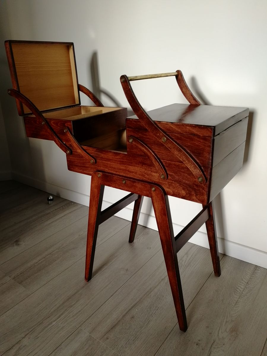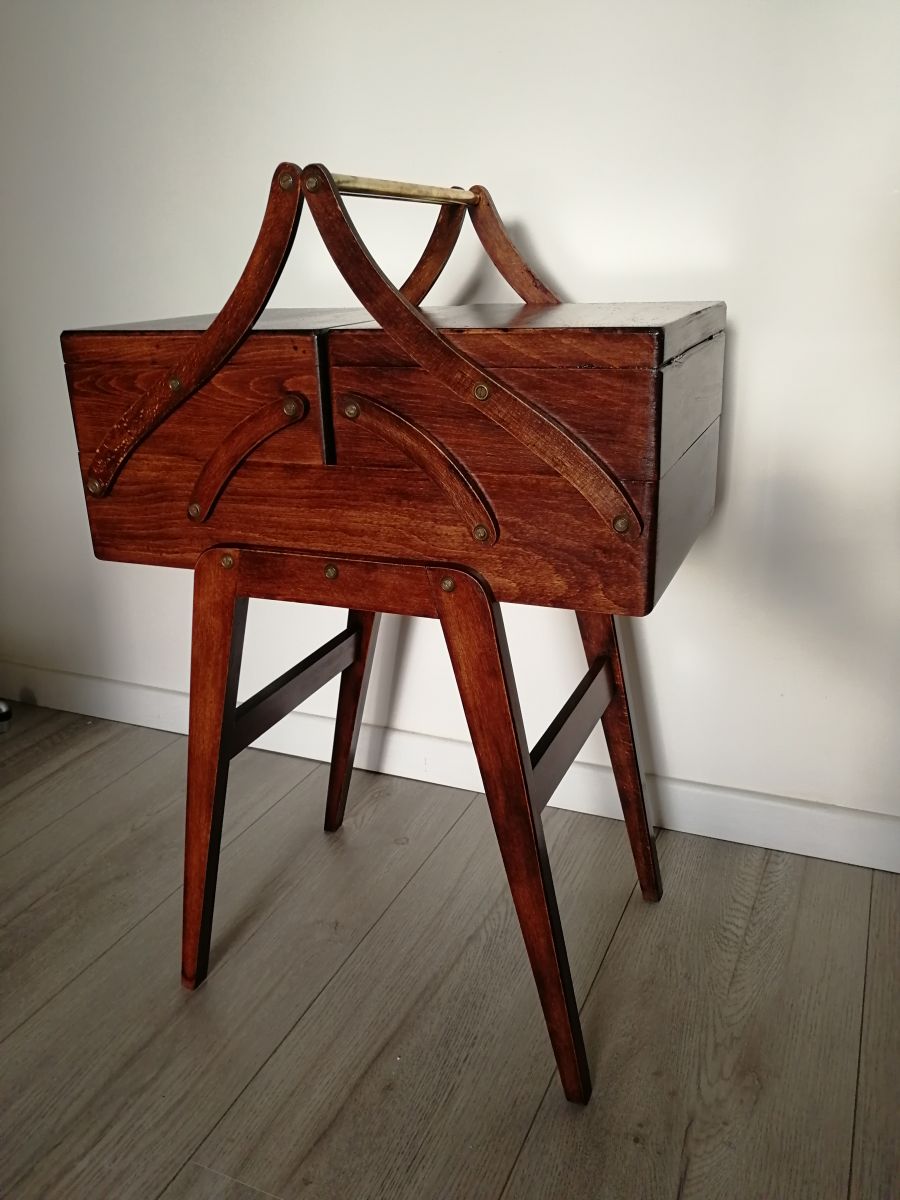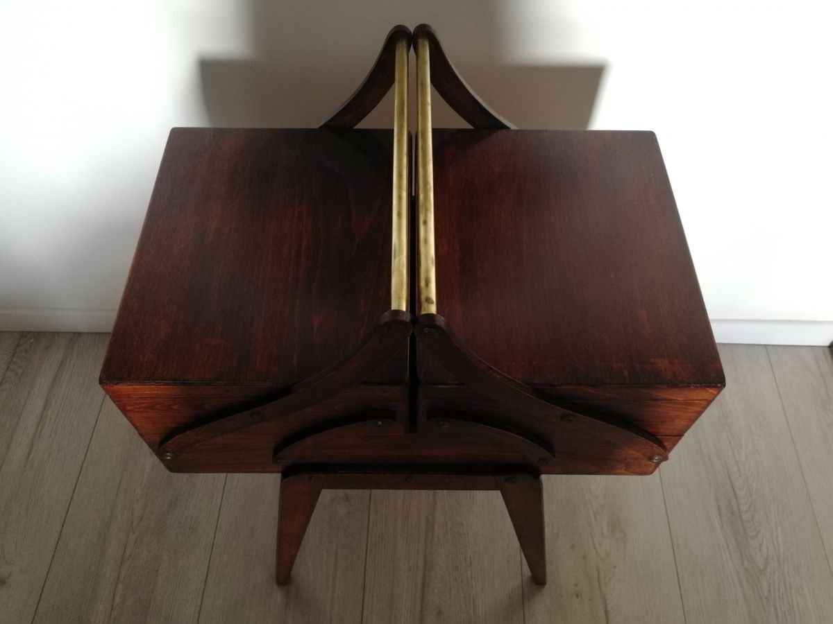 Ancienne travailleuse avec des pieds compas et poignée en laiton. Année 60-70.