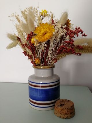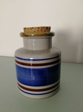 Ancien pot à moutarde des années 70. À utiliser comme pot avec son bouchon en liège ou idéal comme vase.