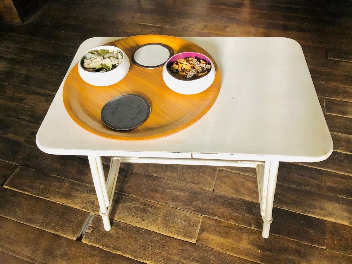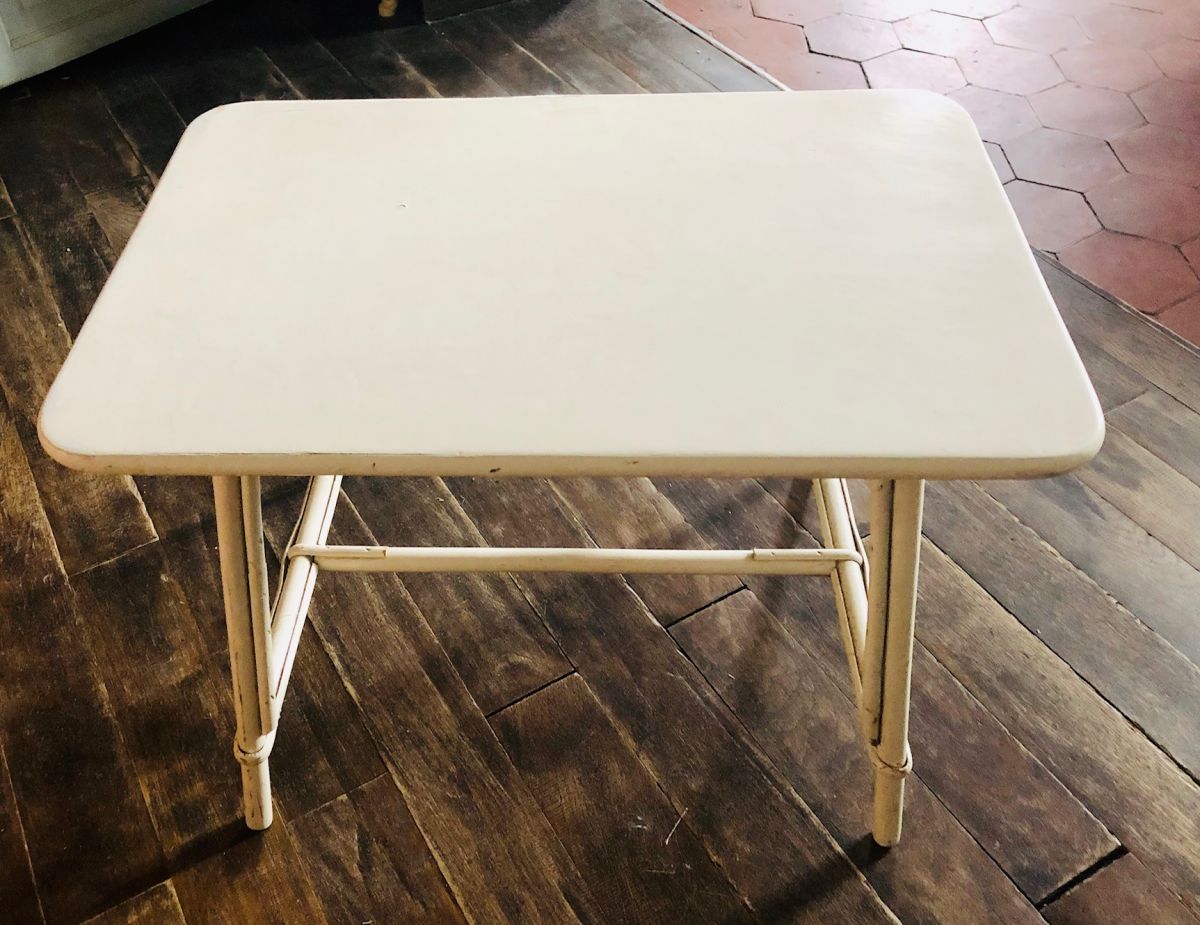 table basse rotin blanc vintage années 50