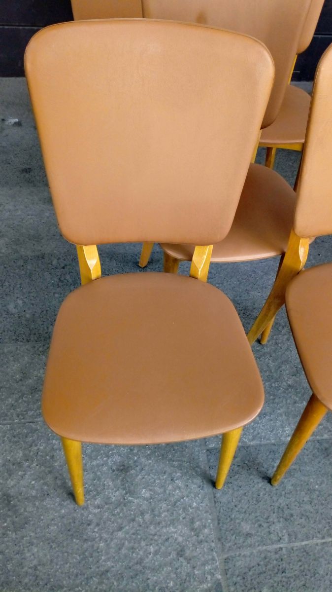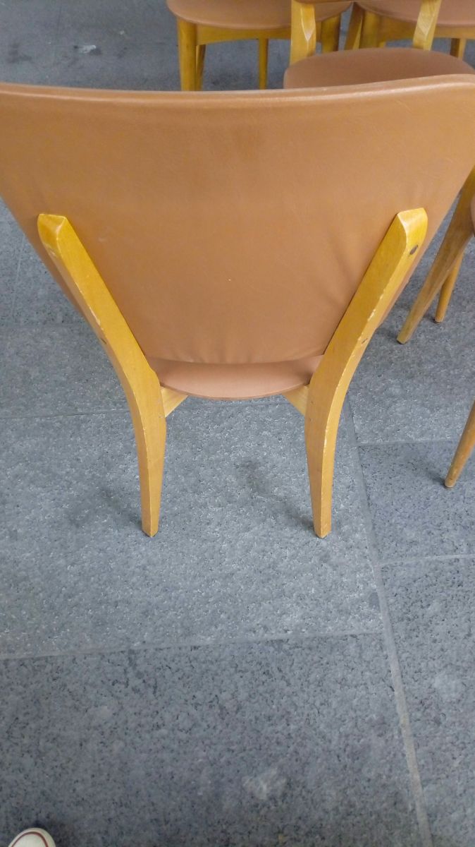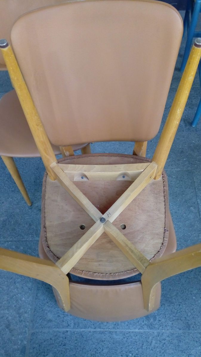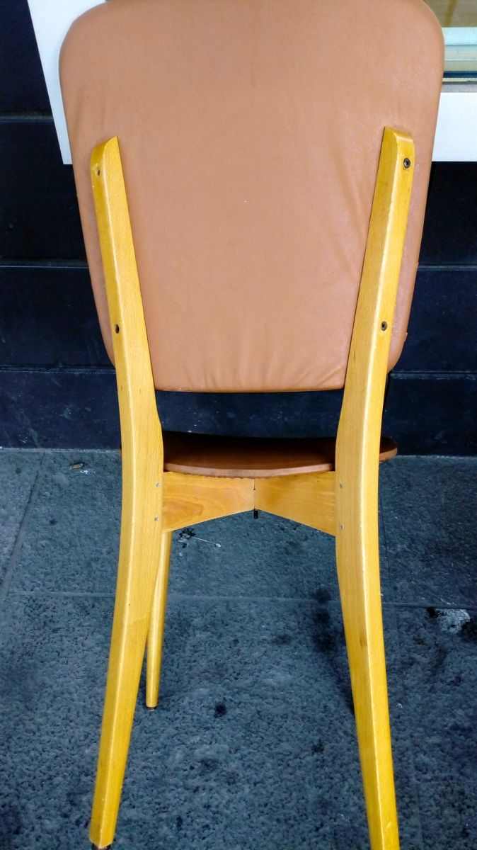 Assise en bois massif solide et stable, recouvert d’un skaï marron doré en très bon état.