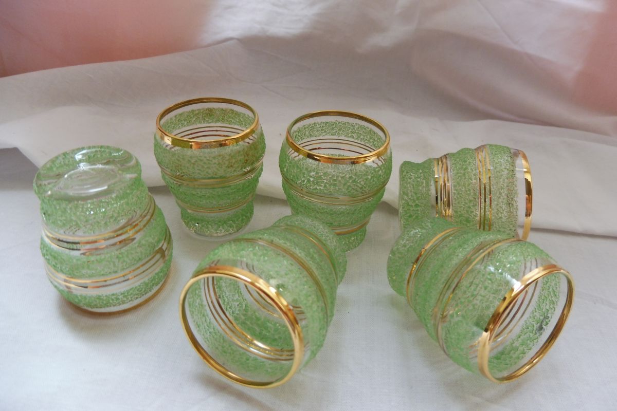 Lot 6 verres liqueur vintage givrés granités