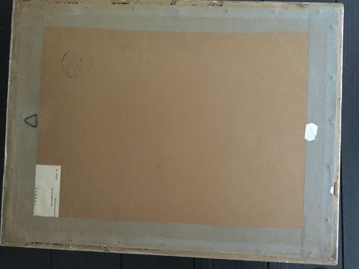 Aquarelle originale de jean Ferraz signée et datée 1942 dans son cadre d'origine avec carte de visite de l'artiste au dos.