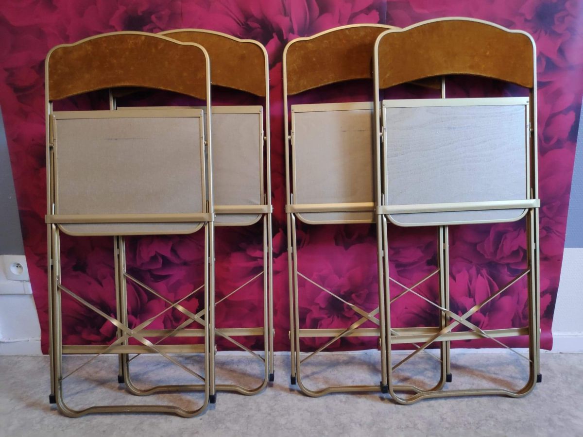 lot de 4 chaises pliantes opéra velours couleur vieil or et structure laiton