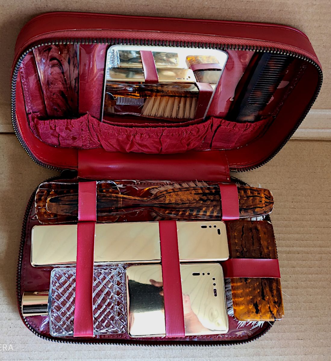 Trousse/valisette de toilette VINTAGE de voyage complète. Couleur ROUGE
