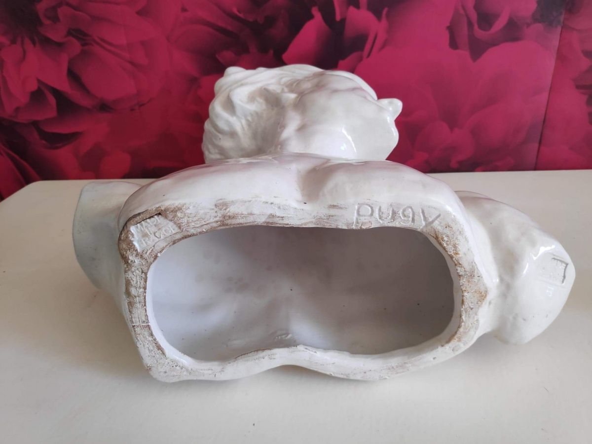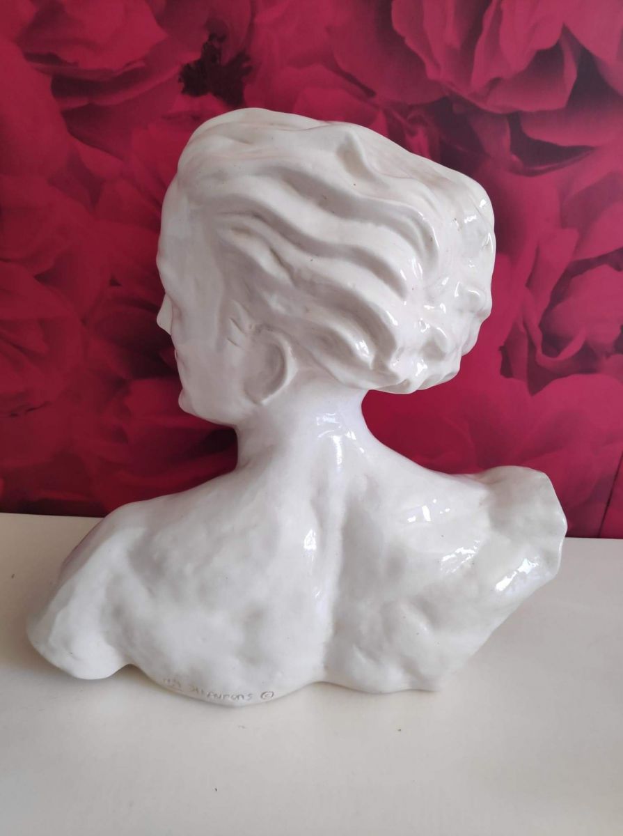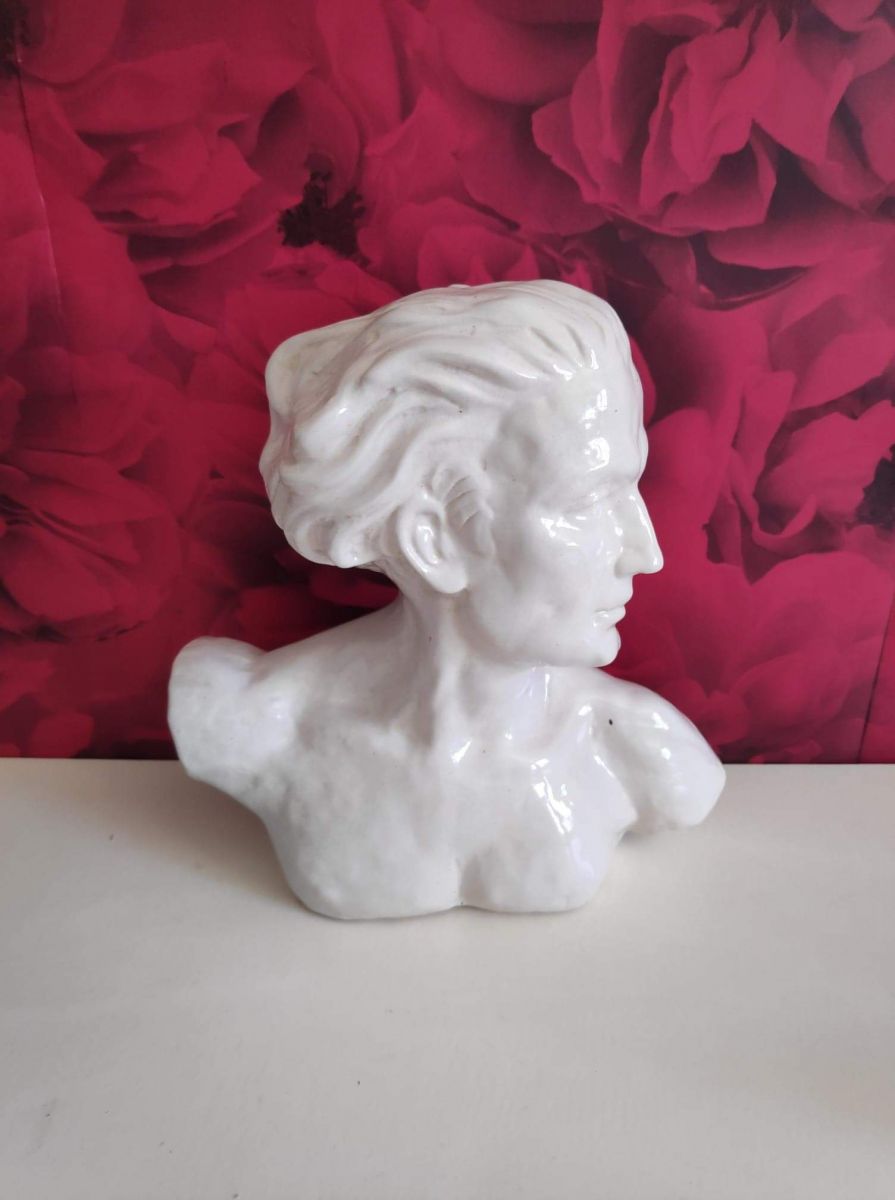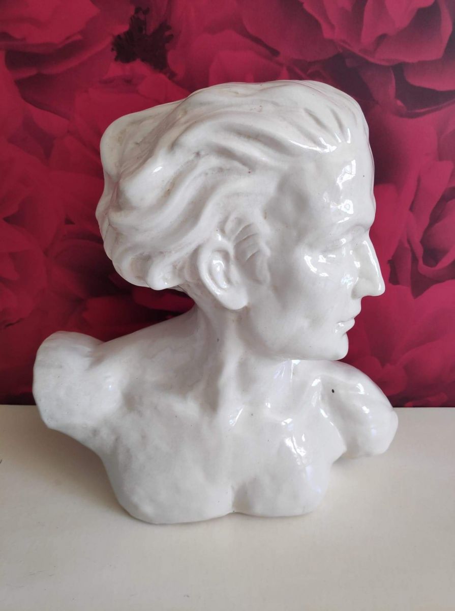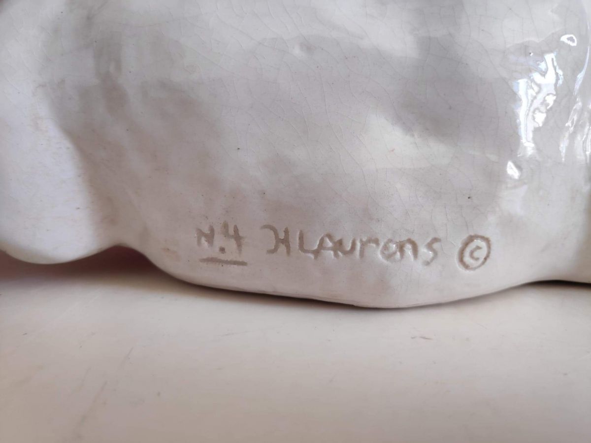 joli buste de J. Mermoz en céramique craquelée blanche signé H. Laurens