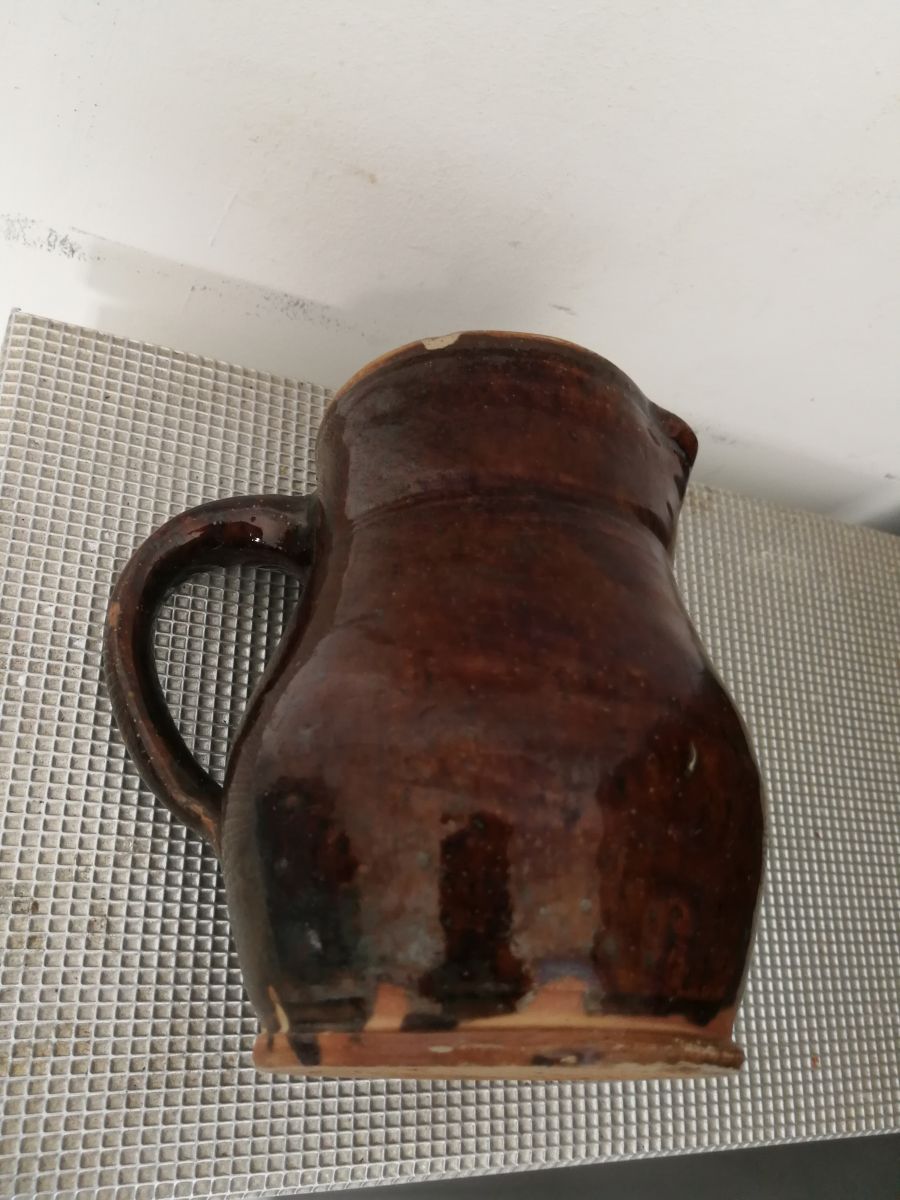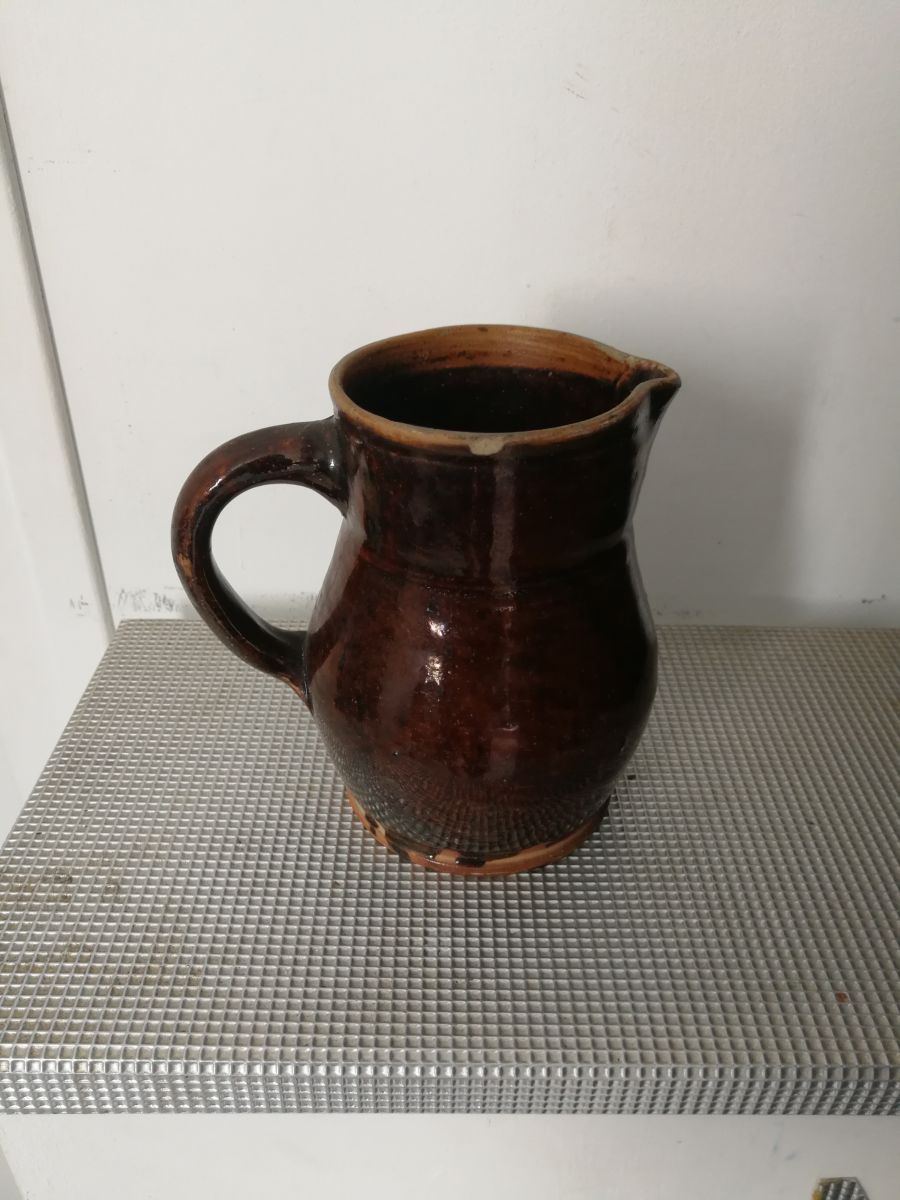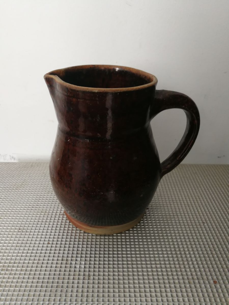 Petit pichet style gré marron petit accroc sur le bord, dans son jus. 440 gr.