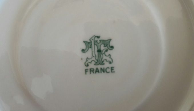 Service à café en porcelaine LT. Années 30. 1 cafetière, 1 sucrier ébréché à l'intérieur, 1 crémier, 12 tasses et 11 sous_tasses.