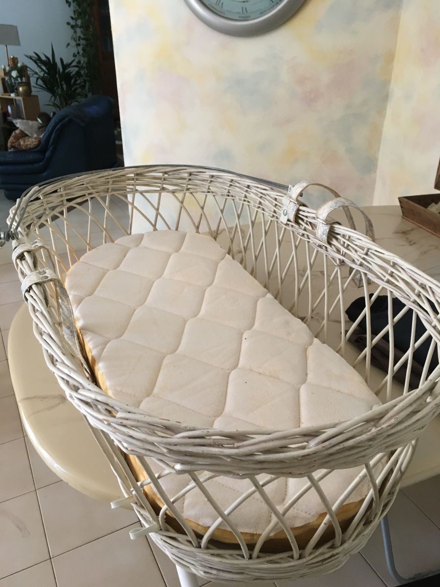 Berceau Moïse en osier blanc, (plus grand qu'un couffin classique)
