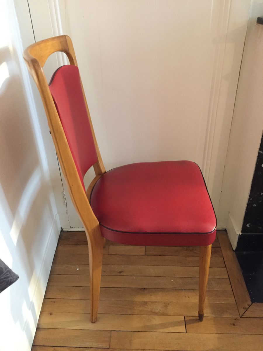 Lot de 3 chaises scandinave années 60 bois et skai rouge
