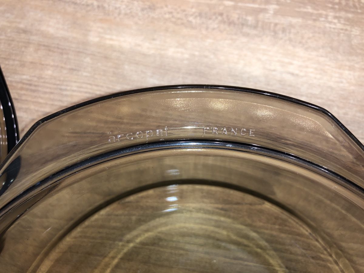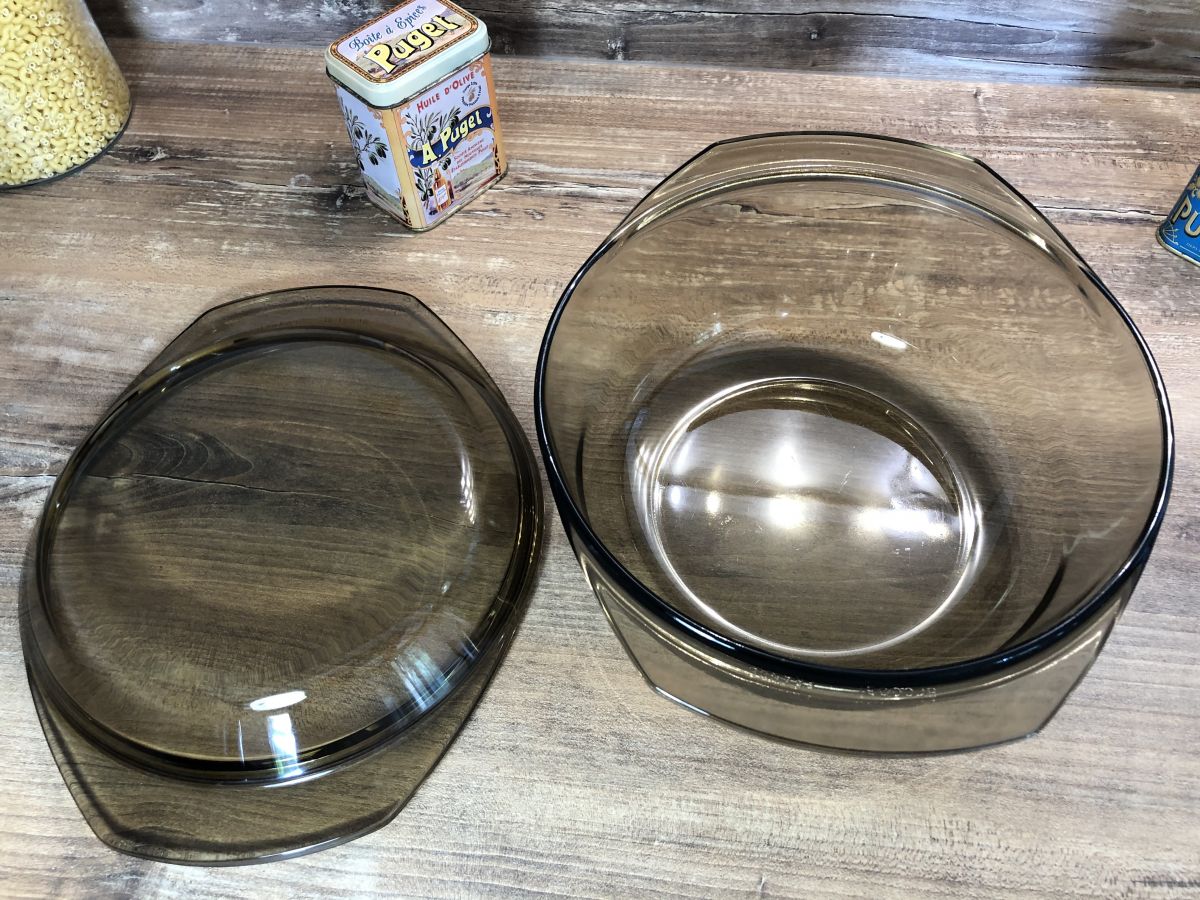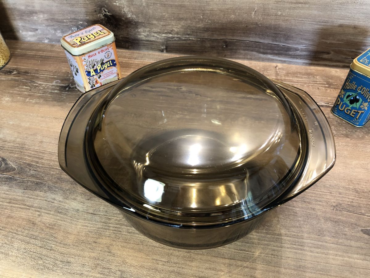 Cocotte Arcopal couvercle, en verre fumé Vintage