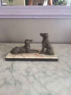 PETITS CHIENS EN ETAIN SUR MARBRE