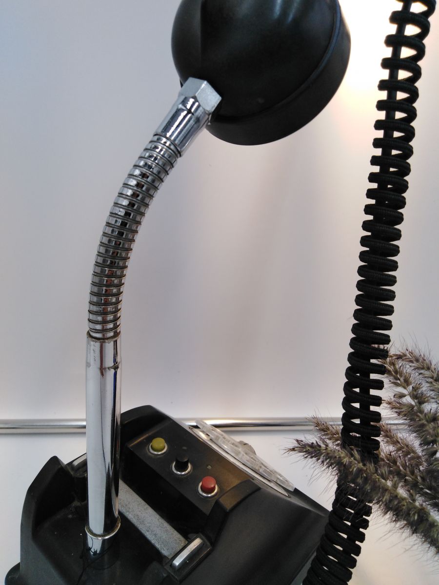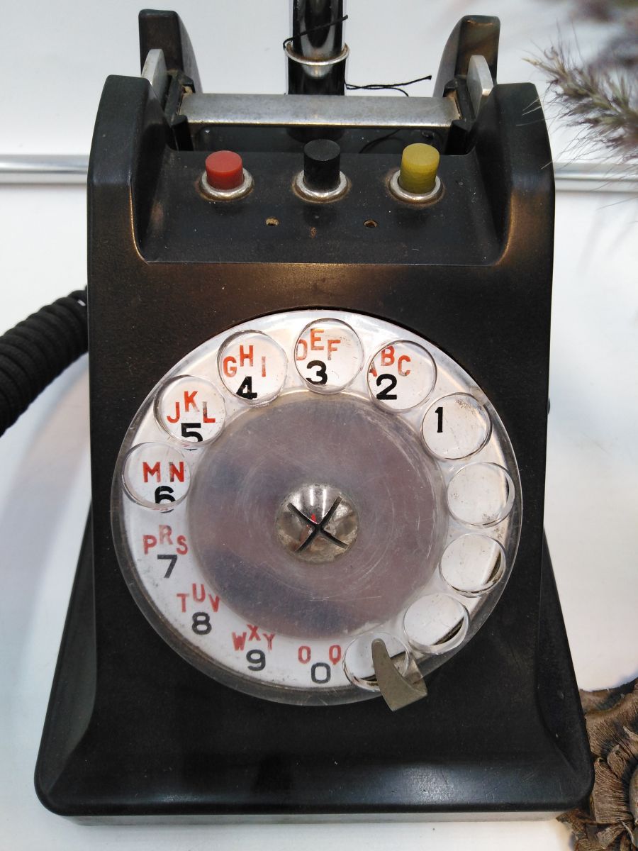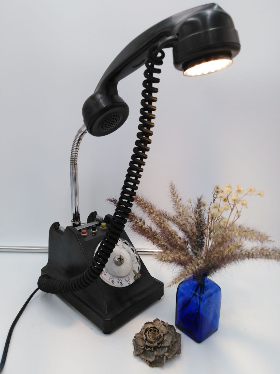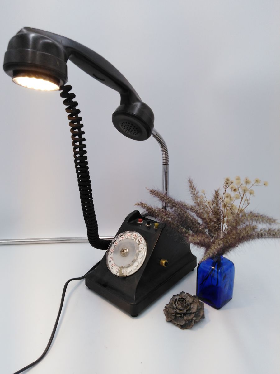 Téléphone vintage en bakelite, transformé en lampe industrielle, ou lampe a poser.