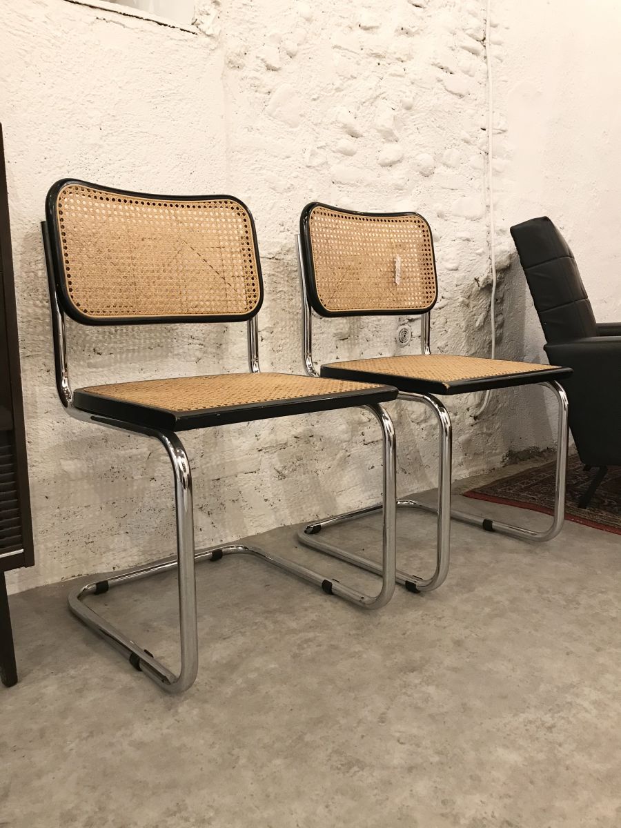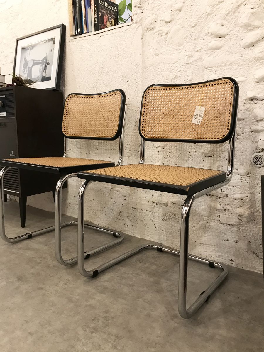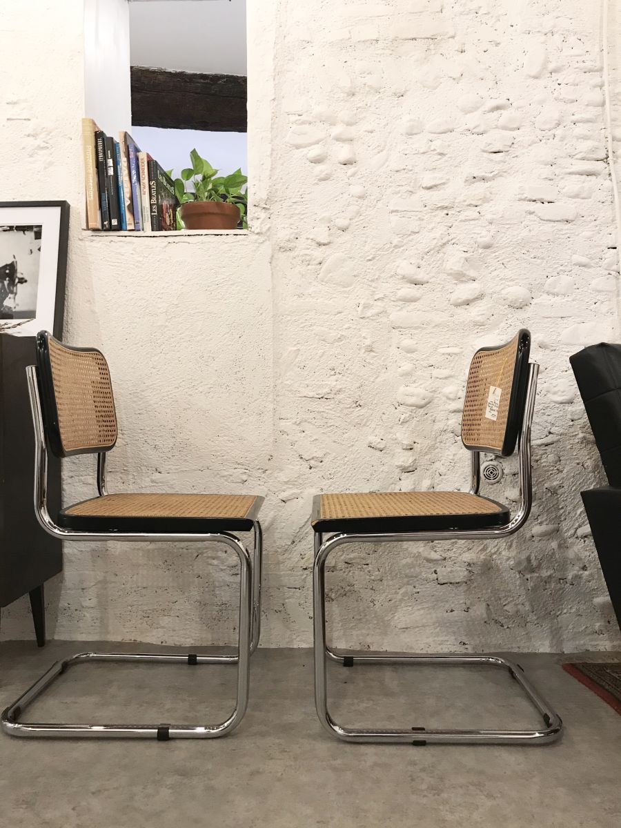 Paire de chaises en cannage, esprit Cesca B32 de Marcel Breuer.