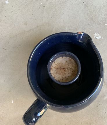 Lot de 2 objets en céramique bleue, un pichet et un pot