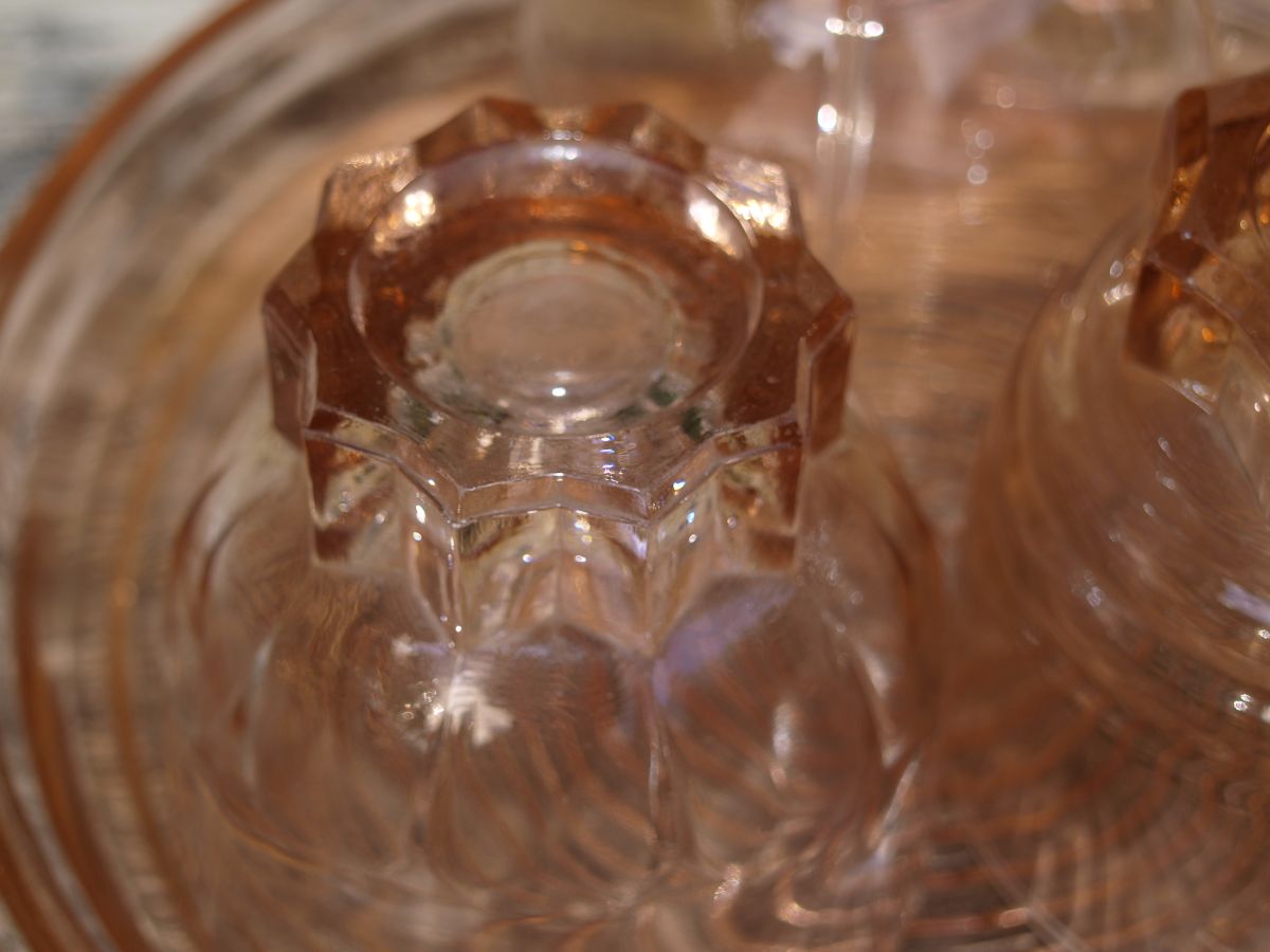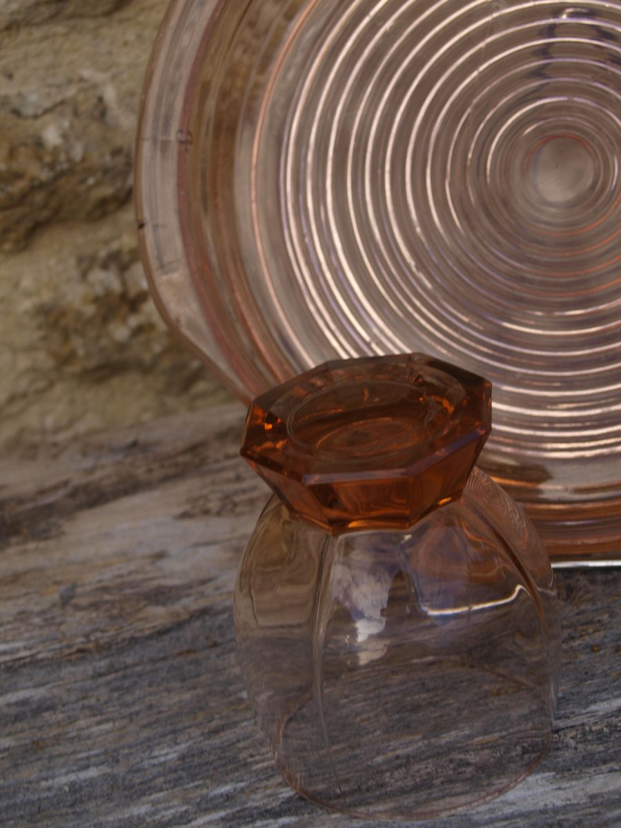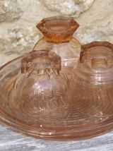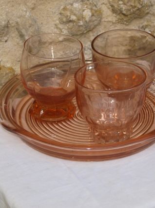 Set recomposé d'un plateau et 3 verres Art Déco rose fumé