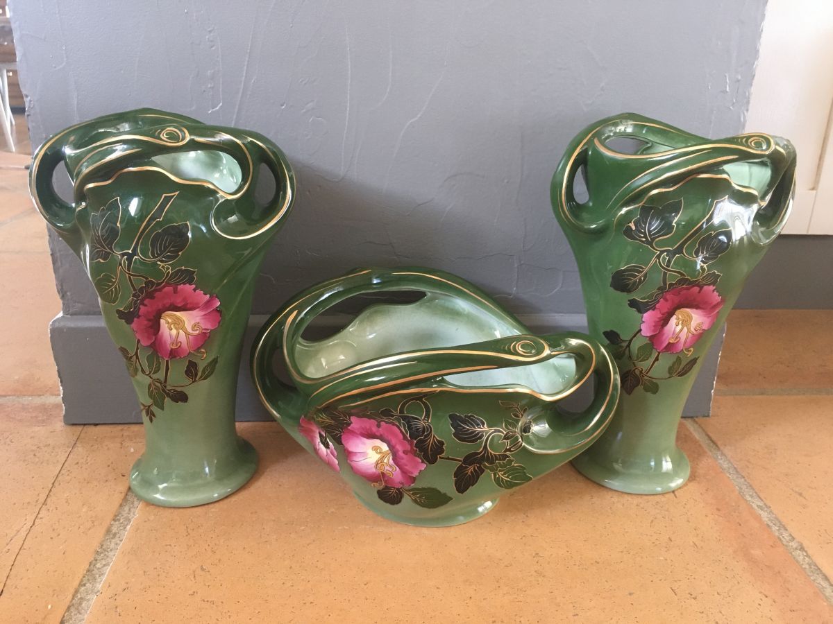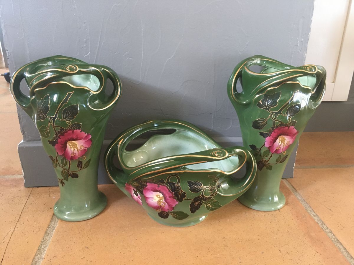 Ensemble de 2 vases + 1 jardinière. En excellent état. Keller & guérin luneville