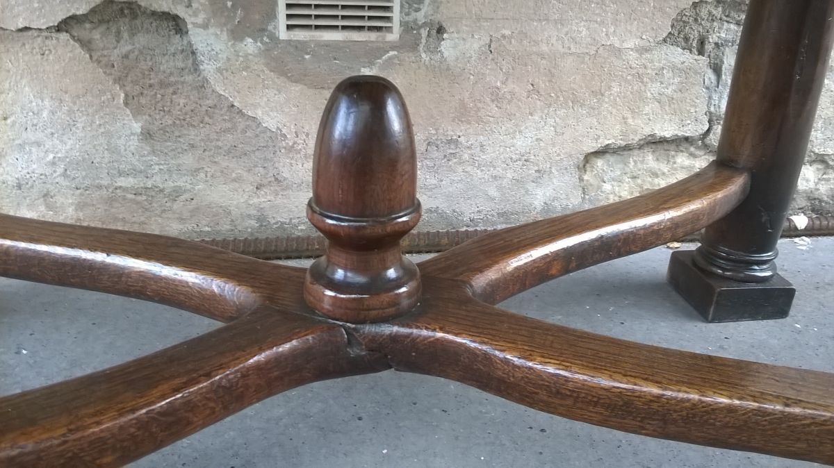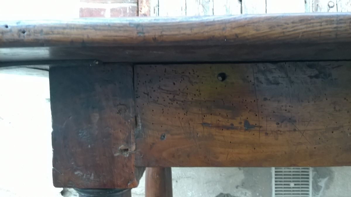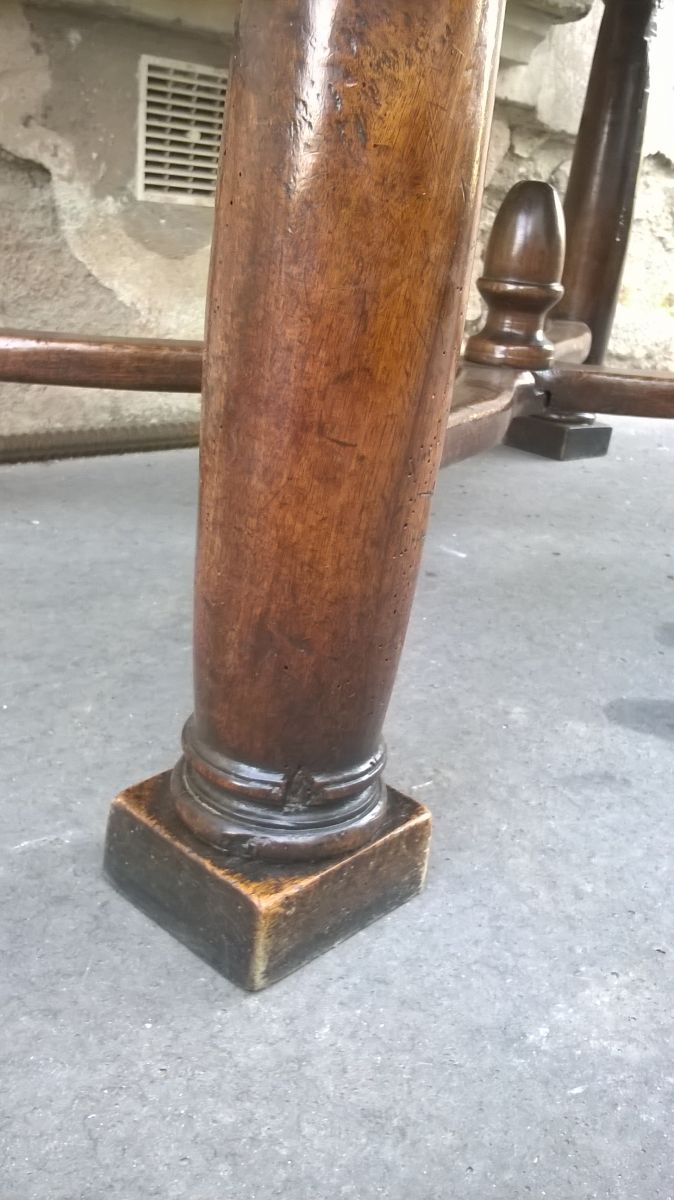Table en noyer renaissance XVII ou XVIII eme. Pieds a colonnes tenue par une entretoise. Hauteur 73 cm. Largeur 120 cm. Profondeur 83 cm. A noté quelque pique ment et renfort. Table stable et solide.
