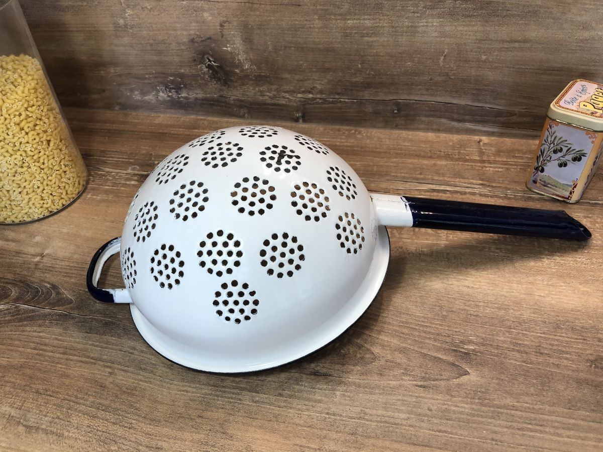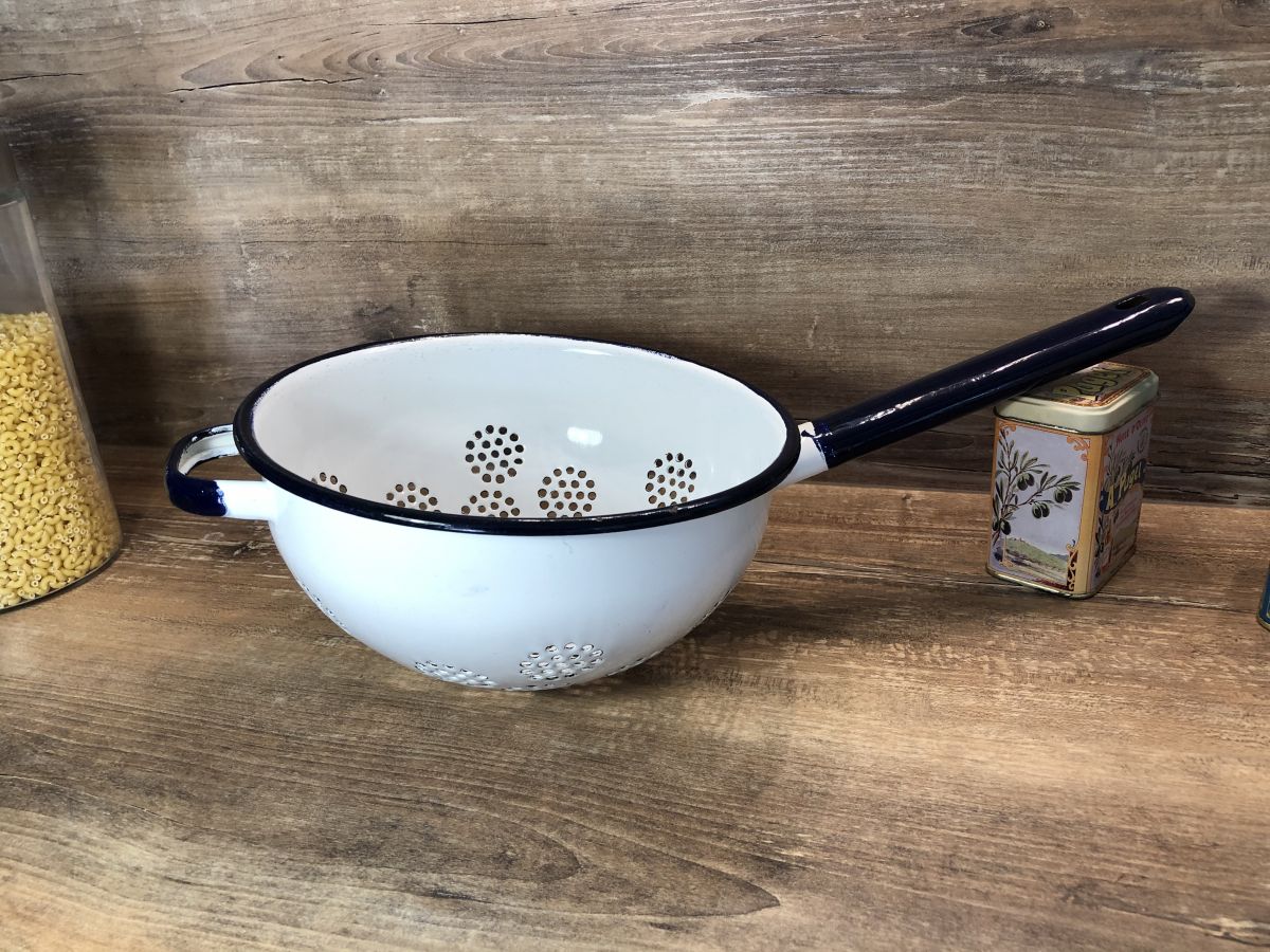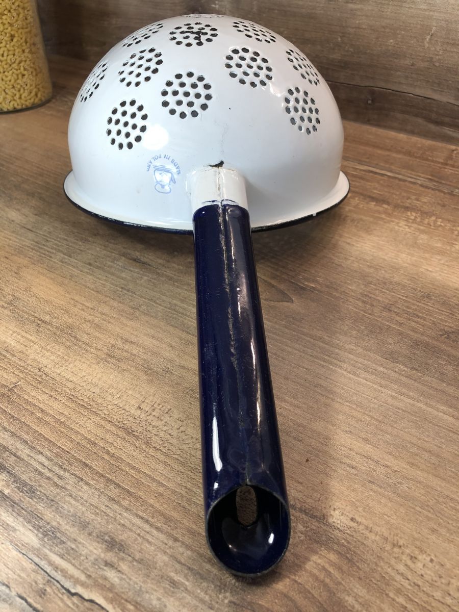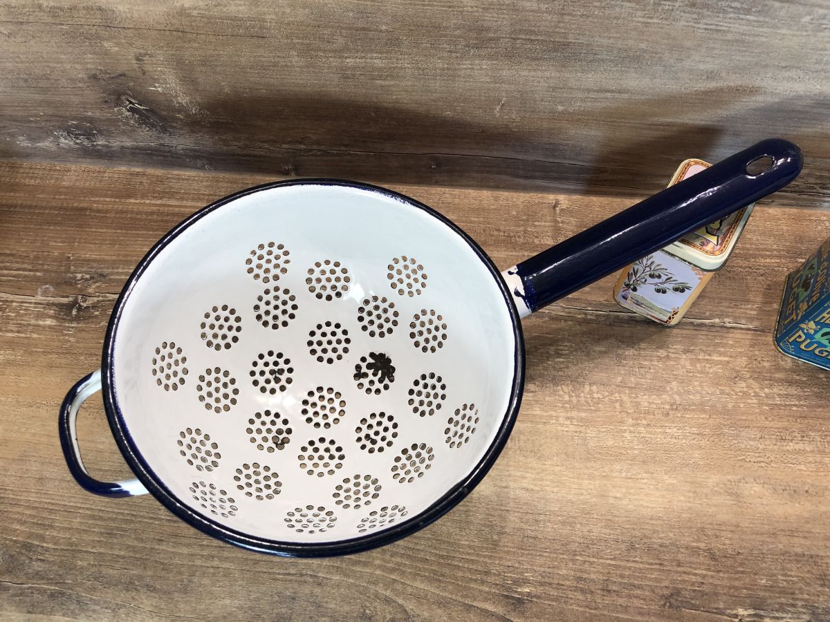 Passoire avec manche - Tôle émaillée - Vintage
