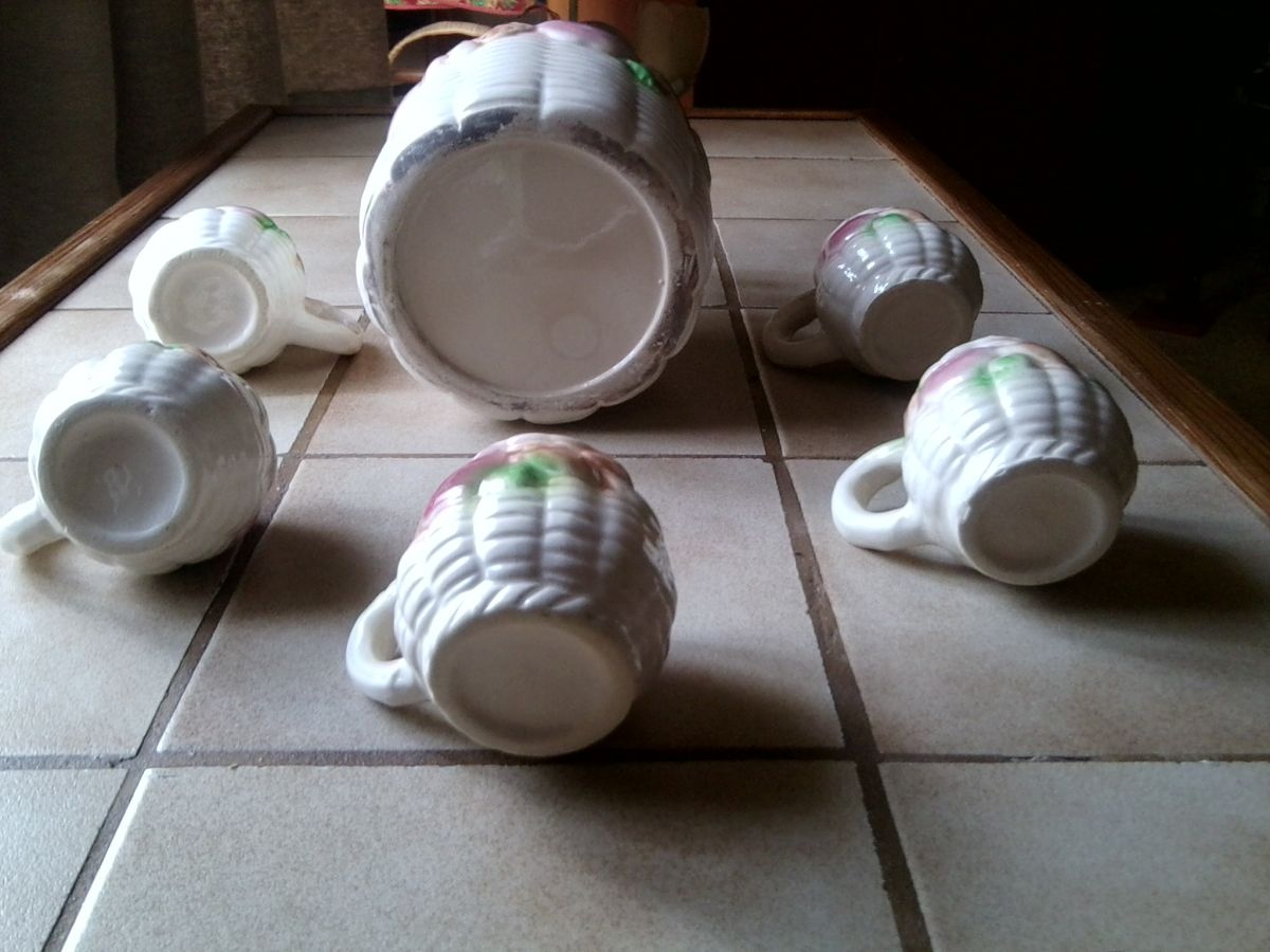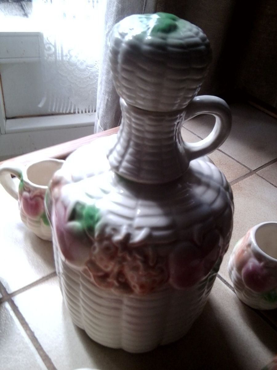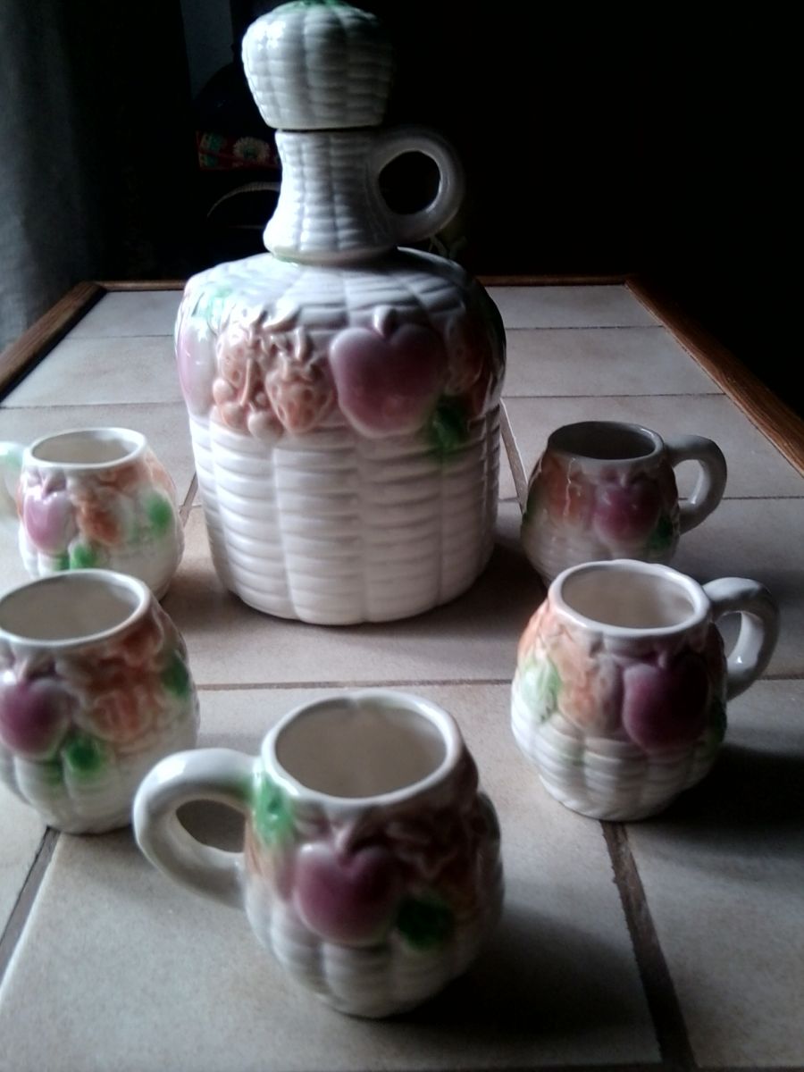 Service à liqueur en céramique barbotine carafe + 5 tasses