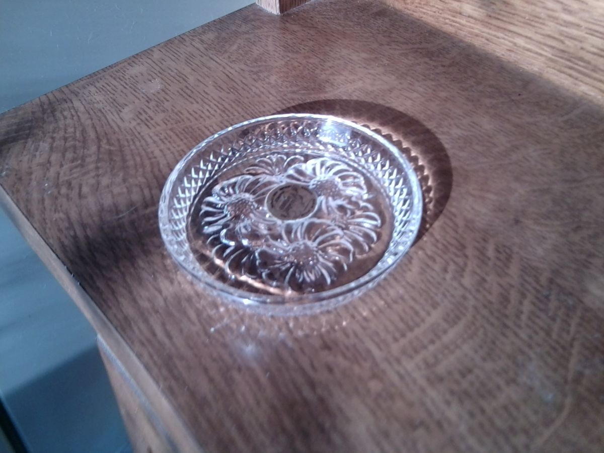 Jolie coupelle , très travaillée (que ce soit les fleurs ou le rebord) compartimentée (4 petits compartiments en tout) qui permet de ranger bagues, monnaie,.......toutes les petites choses qu'on ne sait pas où ranger!
