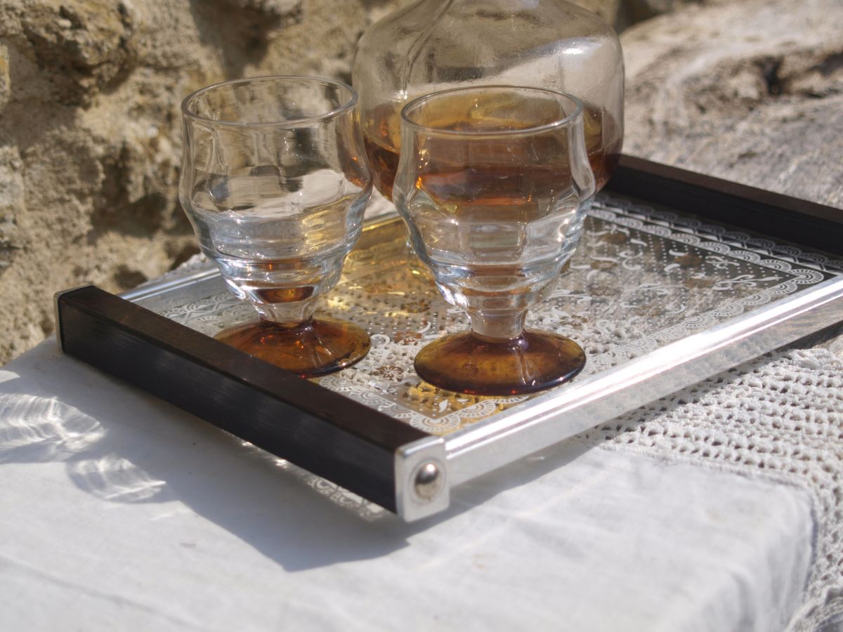 Voici un petit set recomposé pour le service du pousse-café (2 personnes) par exemple le Cognac (voir photos).