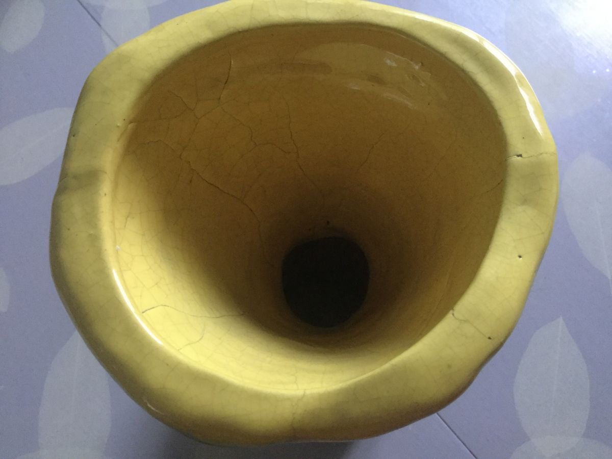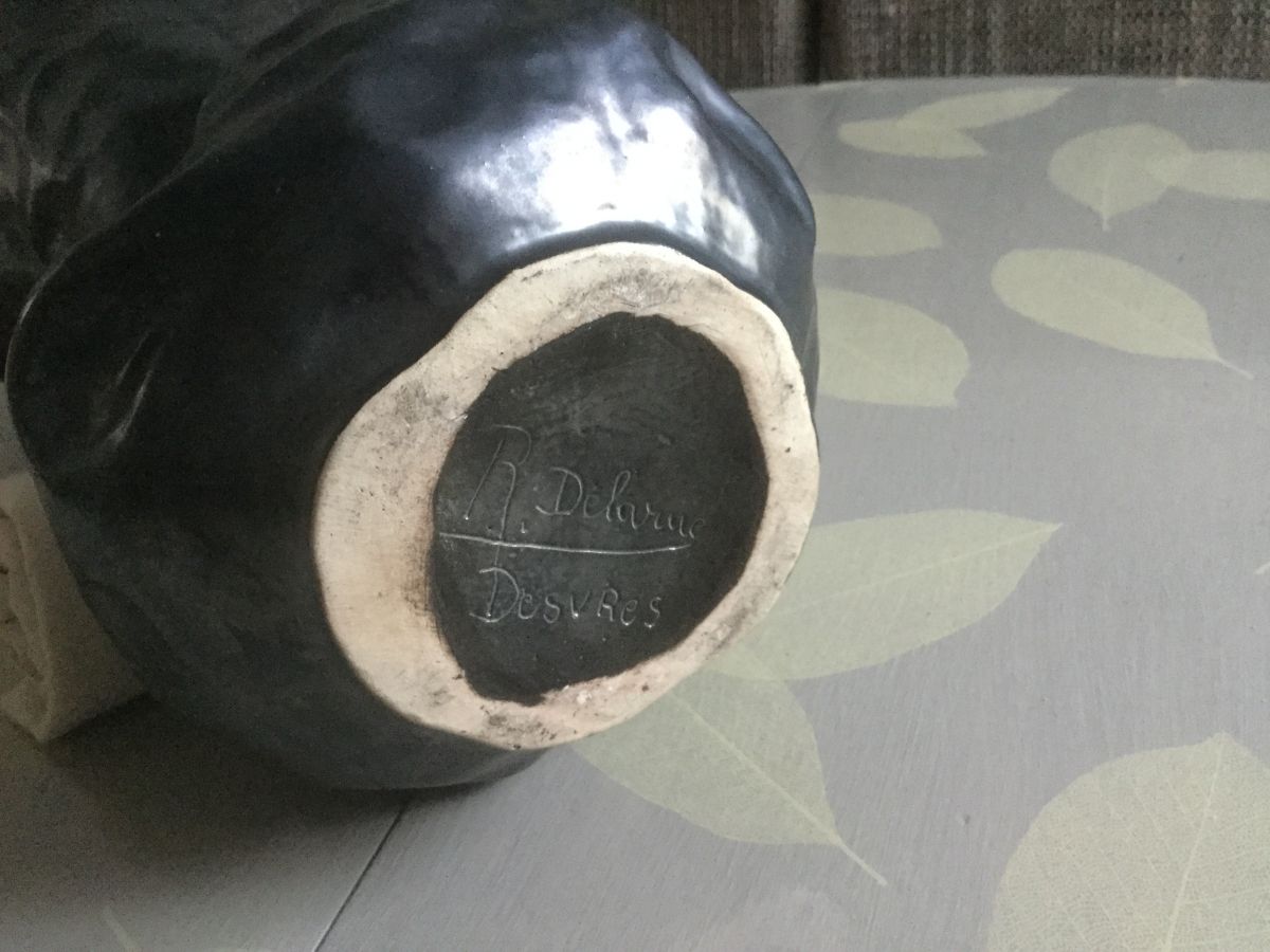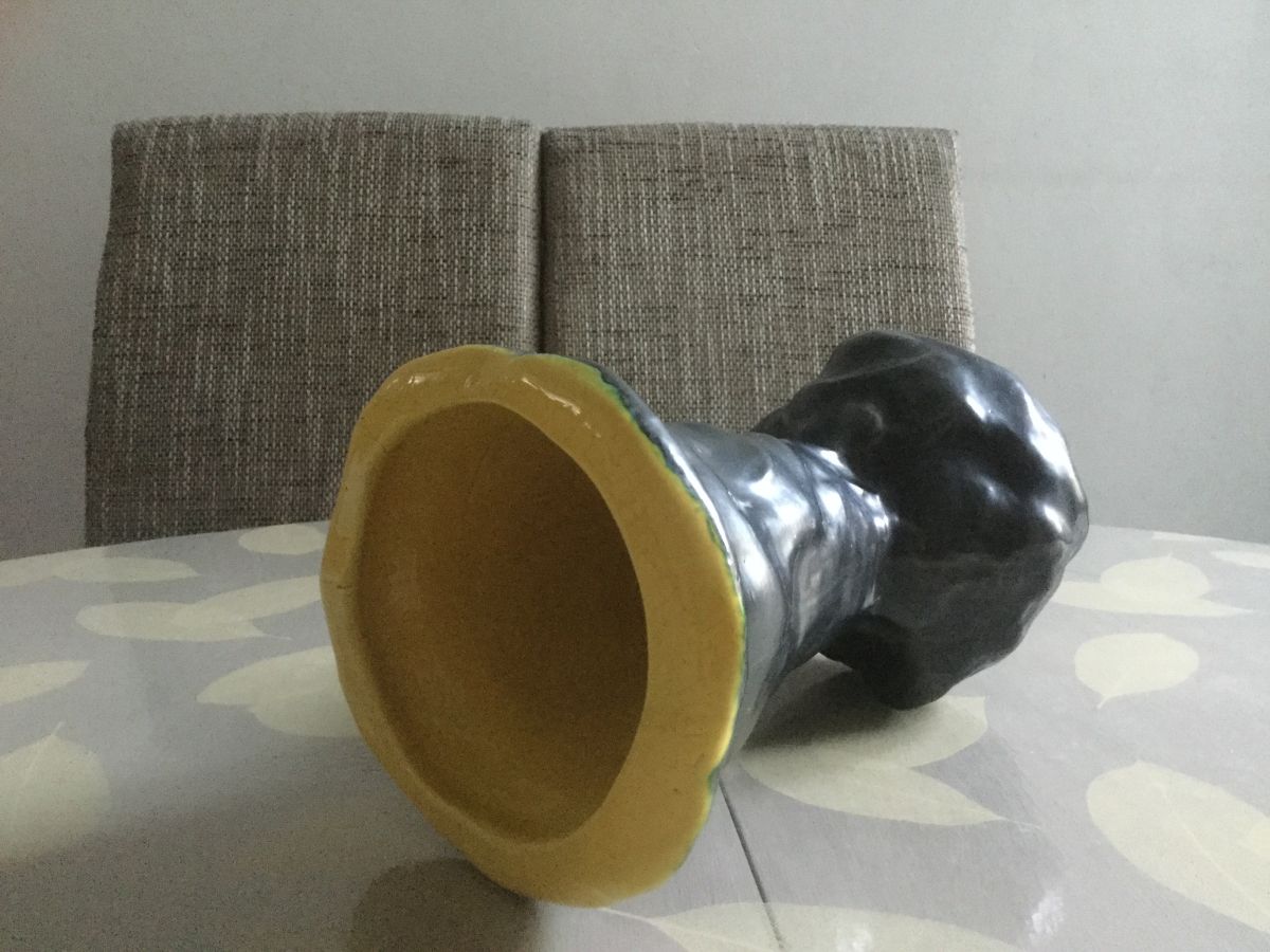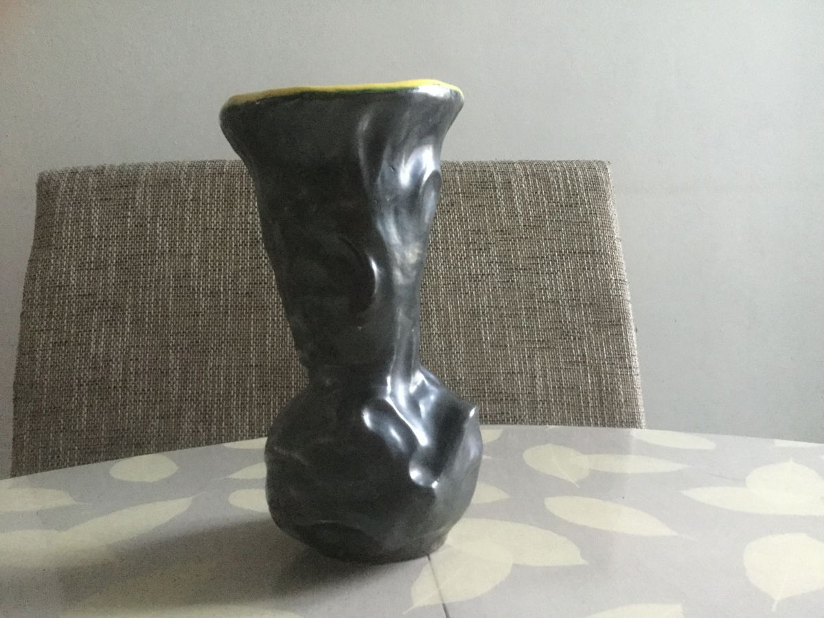 (Potier de DESVRES ) dans son jus ! Craquelures du temps à l’intérieur du vase ! Noir patiné à l’extérieur et jaune à l’intérieur ! Bel objet assez rare !