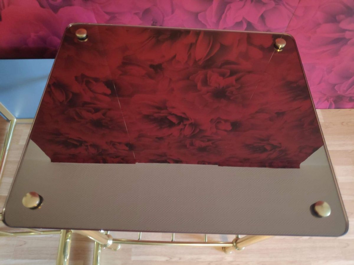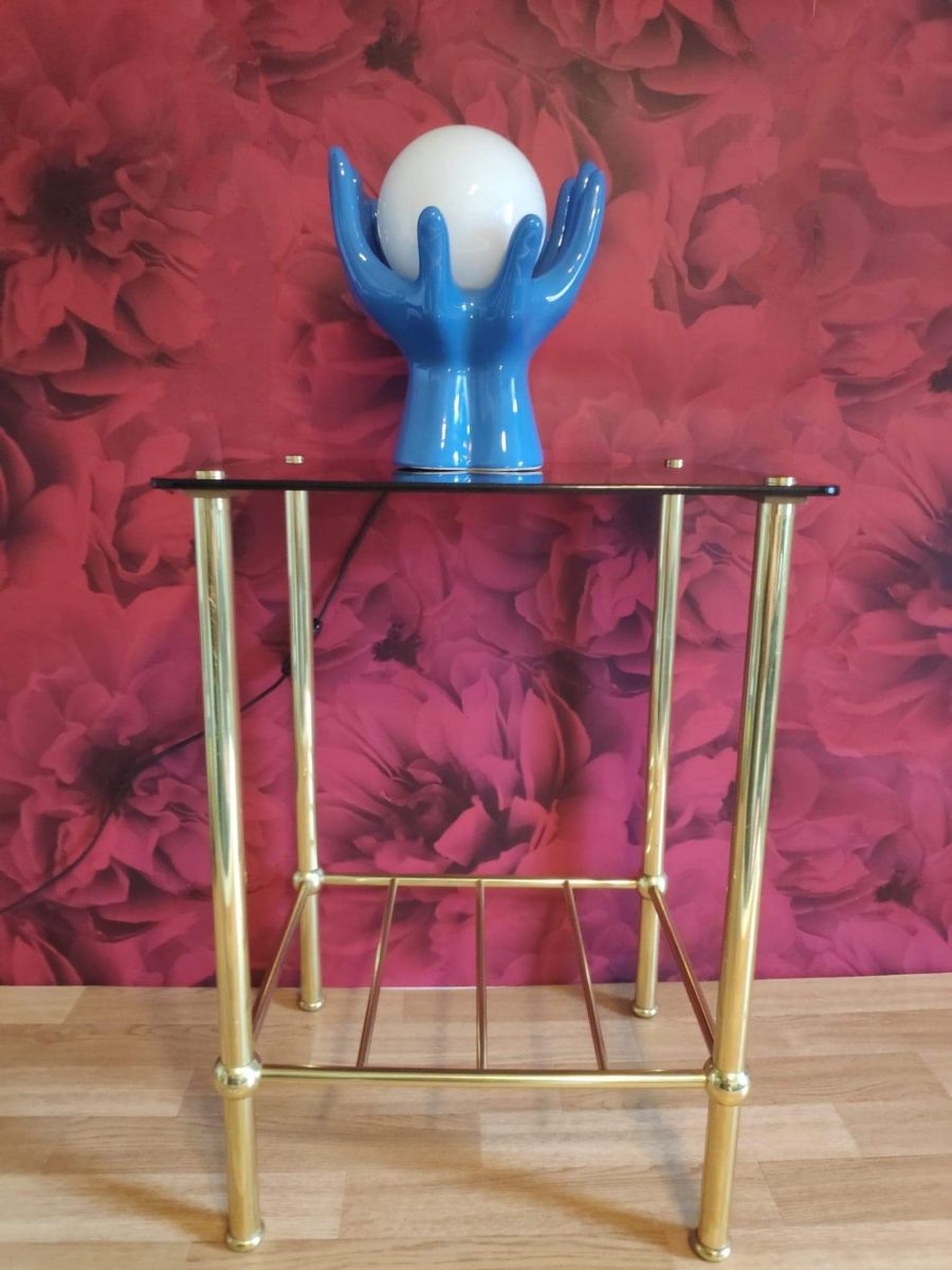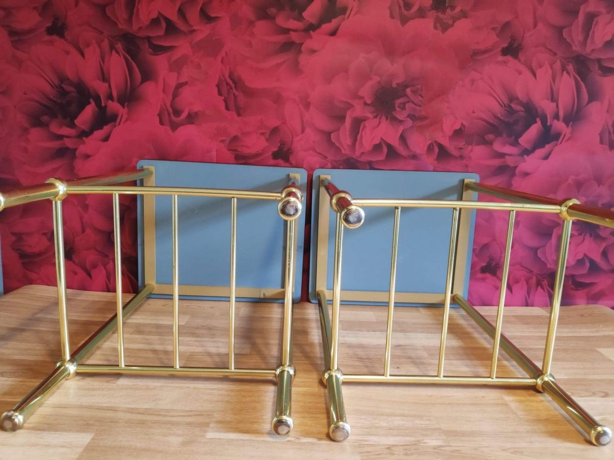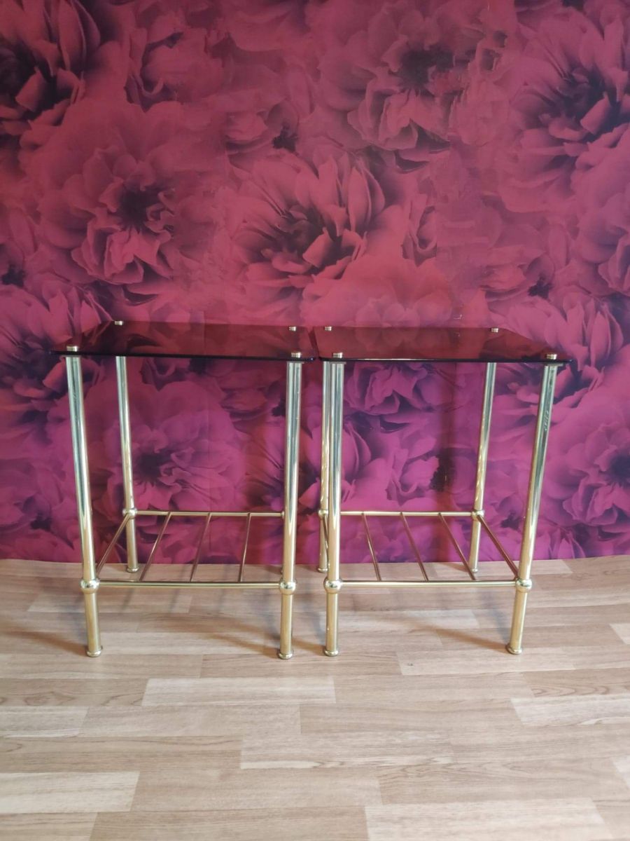 chevets structure en métal doré et tablette en verre fumé des années 80