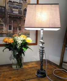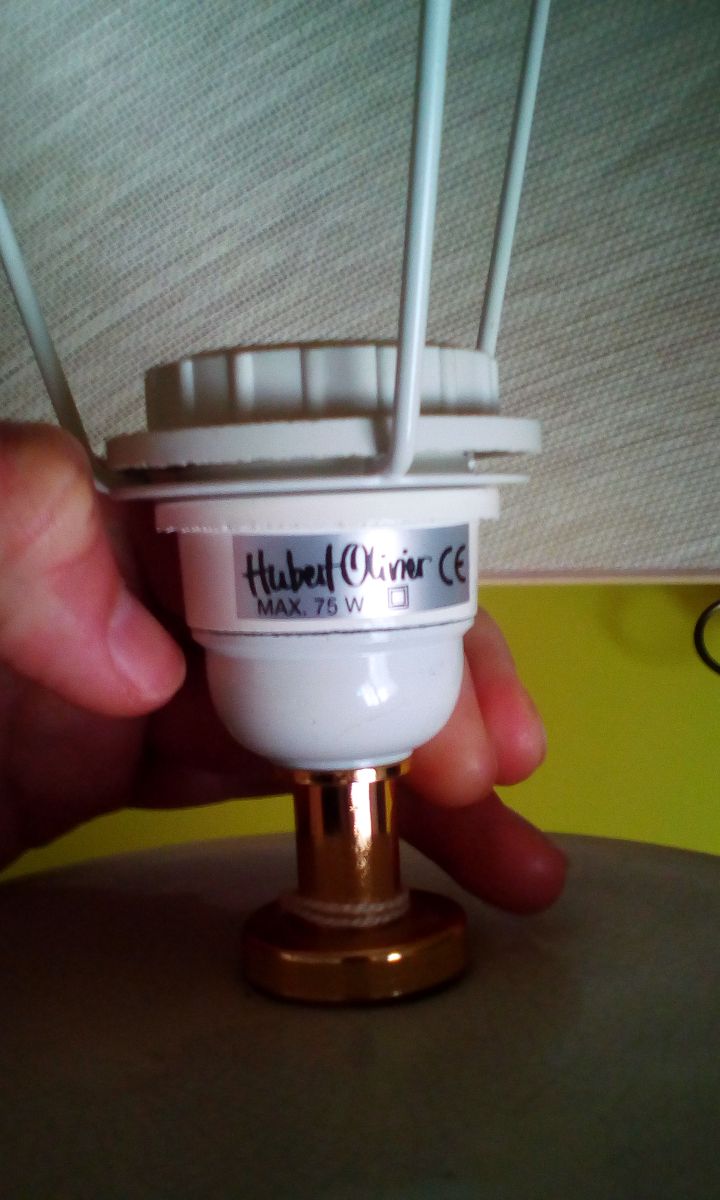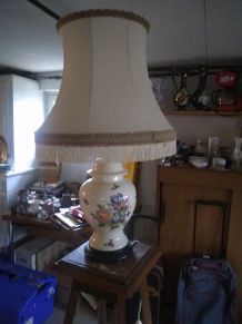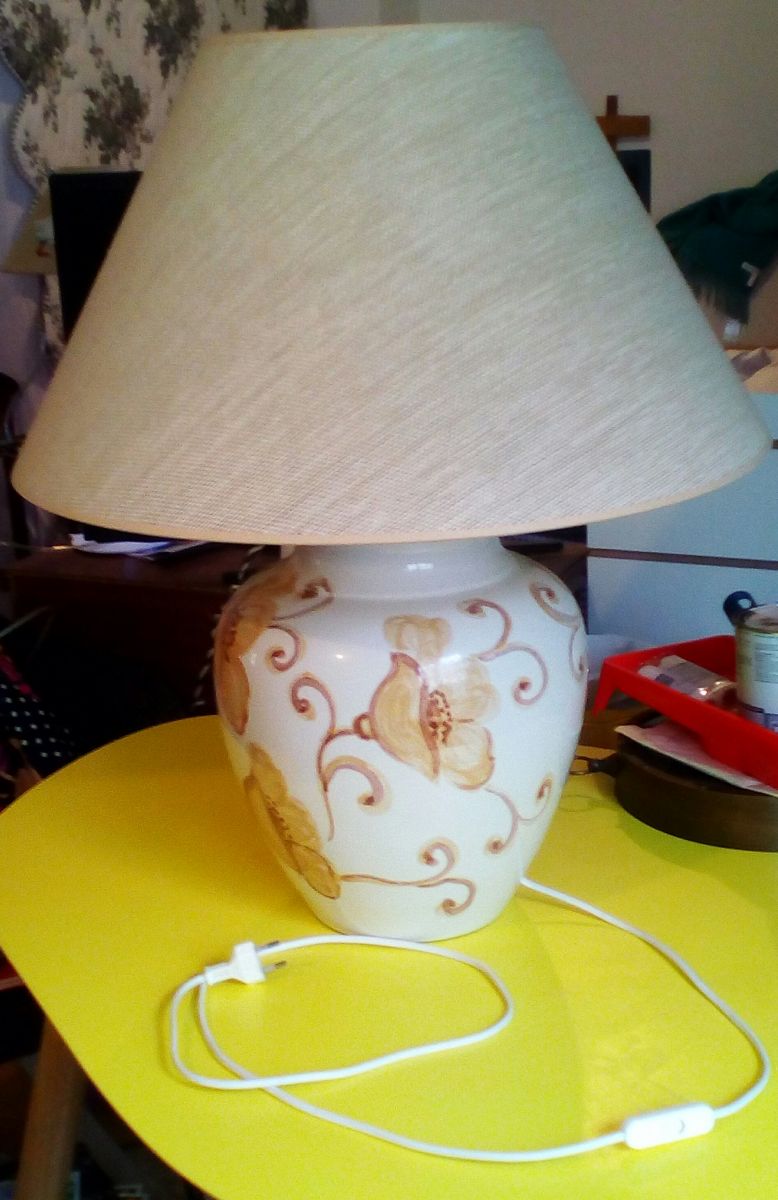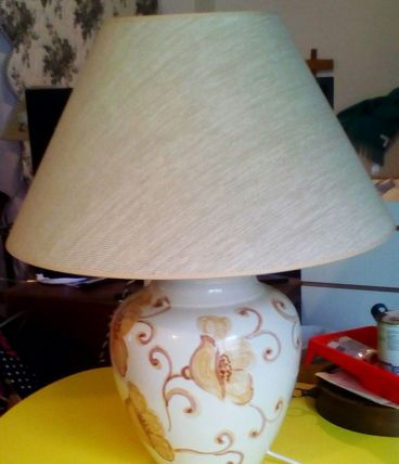 Grande lampe à poser avec base en céramique peinte tons beiges signée de l artiste Hubert Olivier , achetée 350€