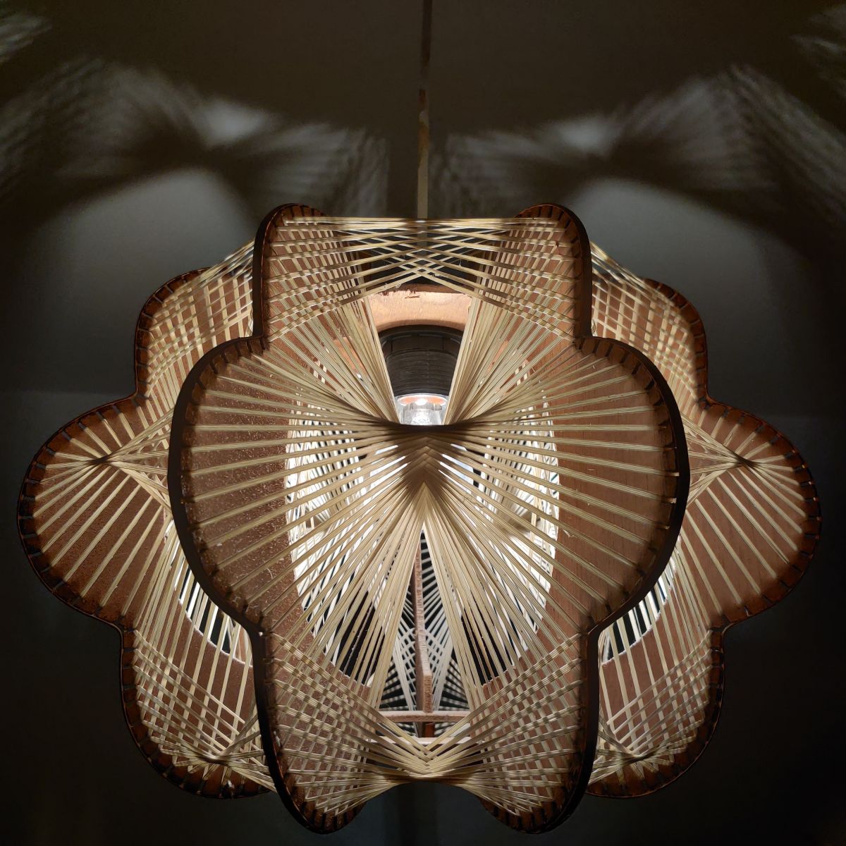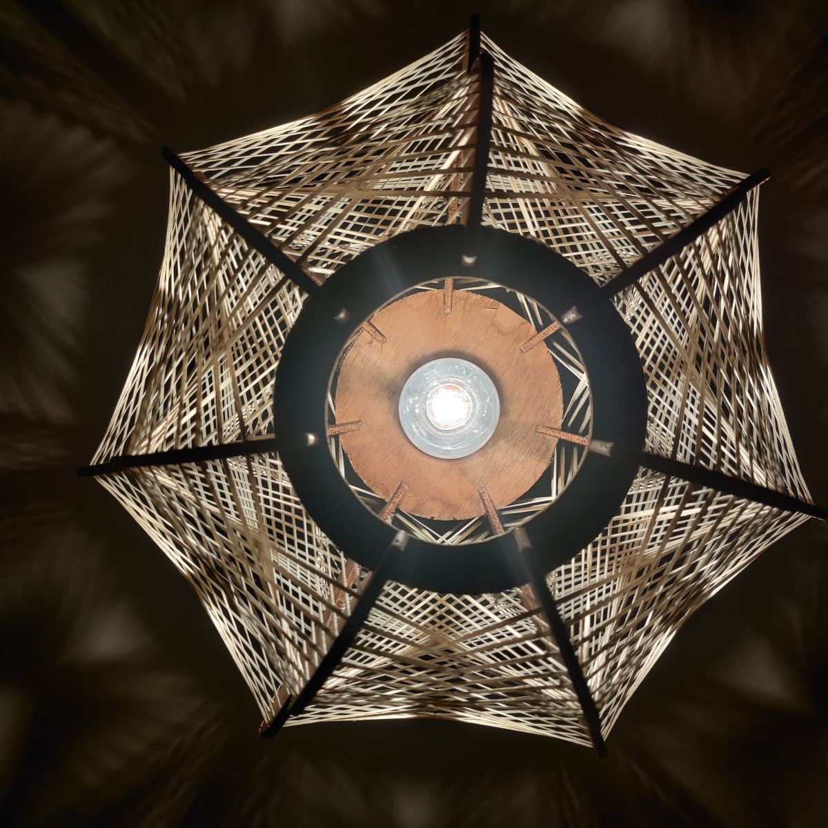Suspension avec abat-jour en bois et fils scandinave des années 60.