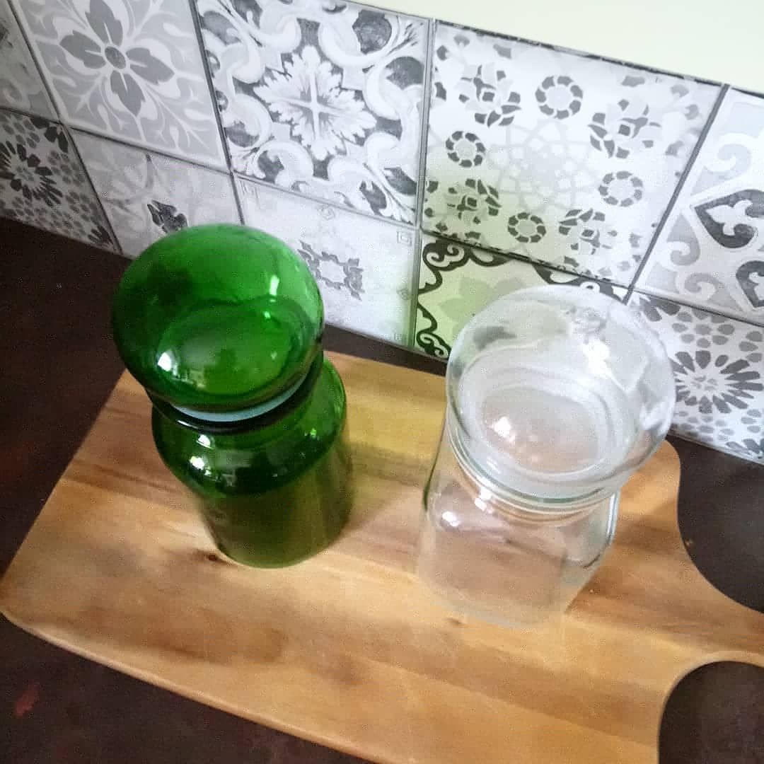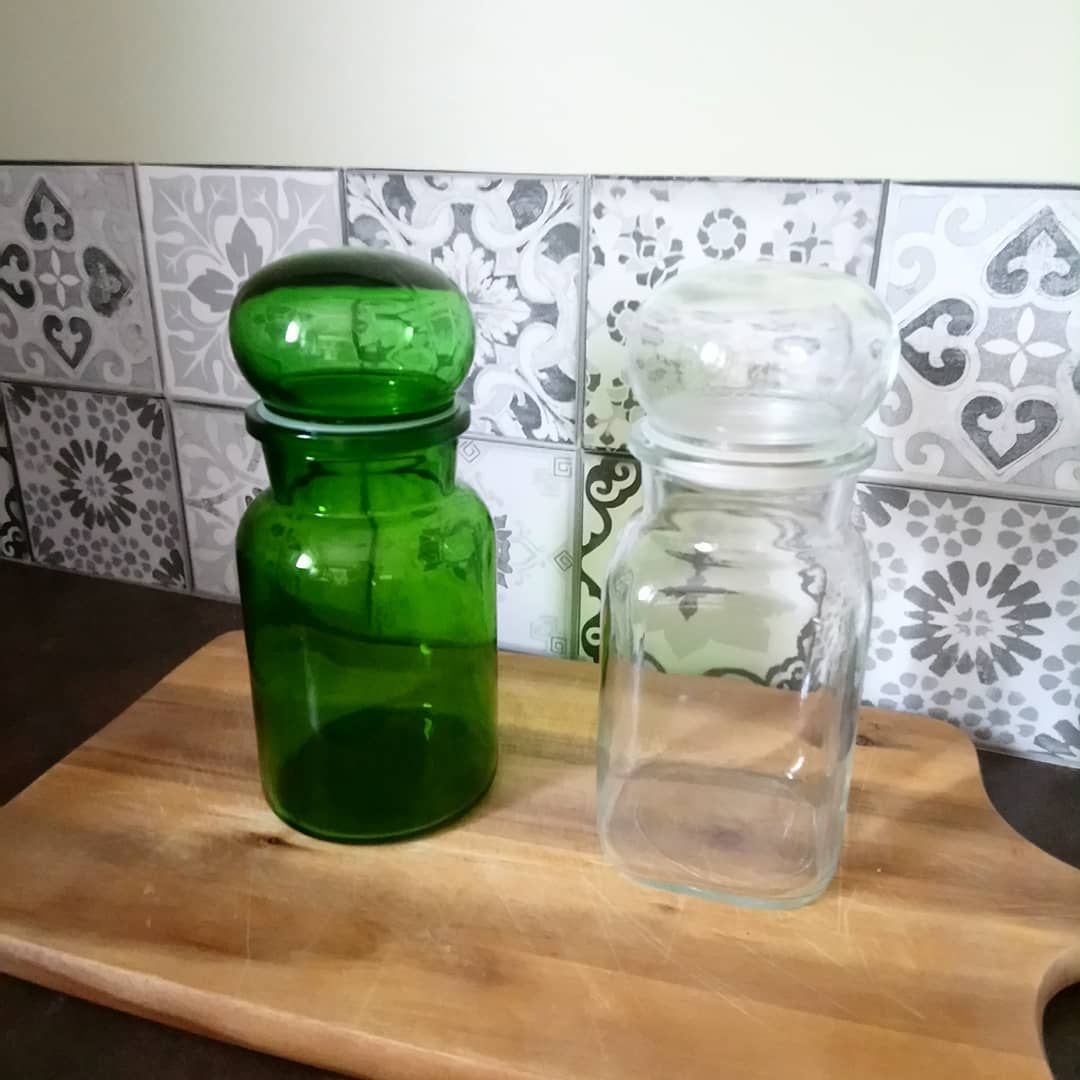 Pots d'apoticaire vert et transparent vintage. Grande taille.