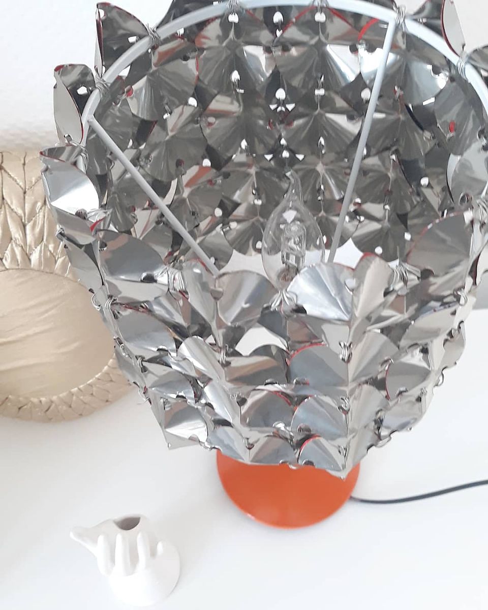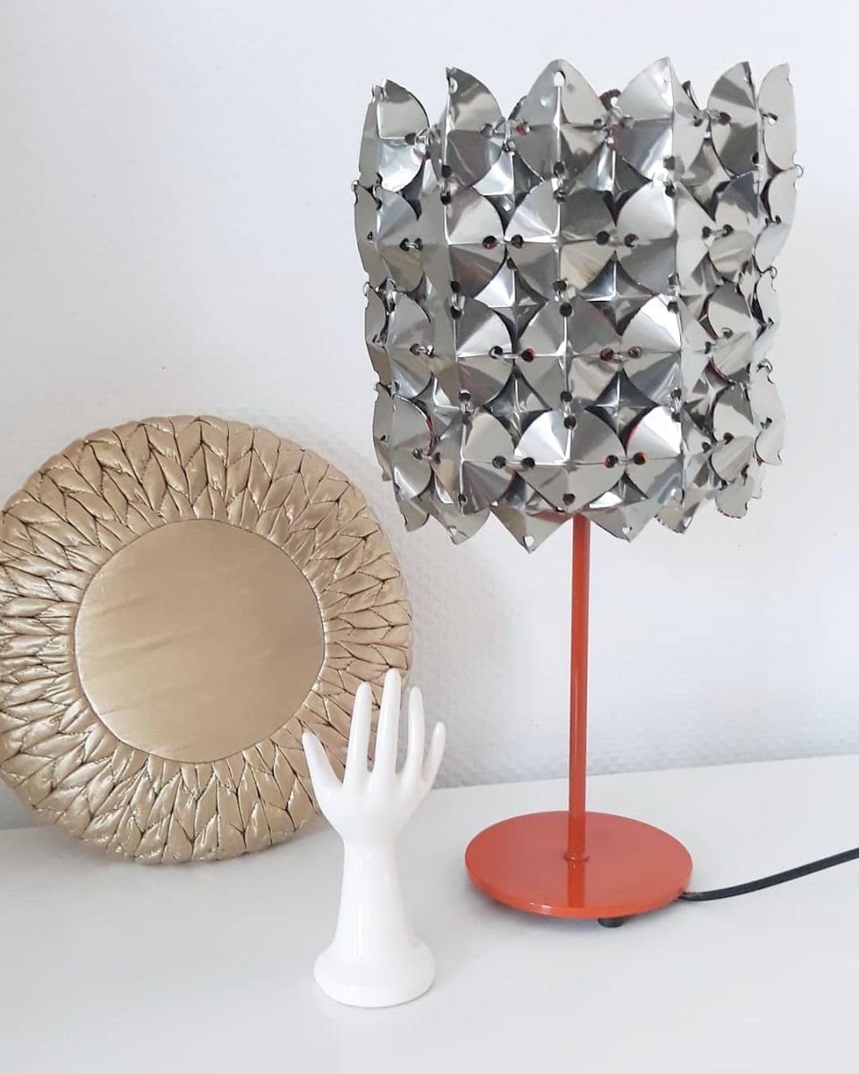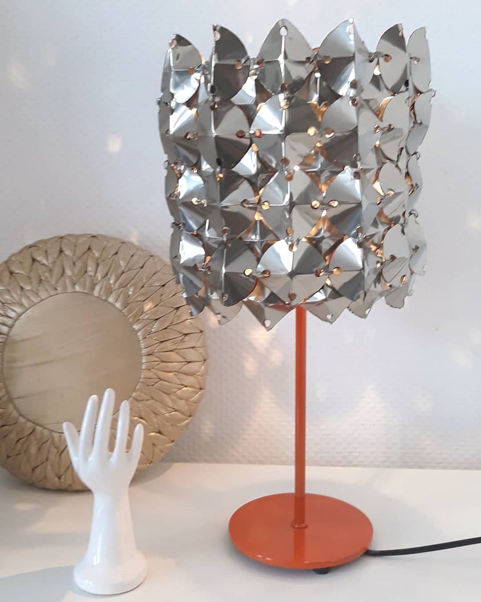 Lampe 70's métal upcyclin et pied en métal orange