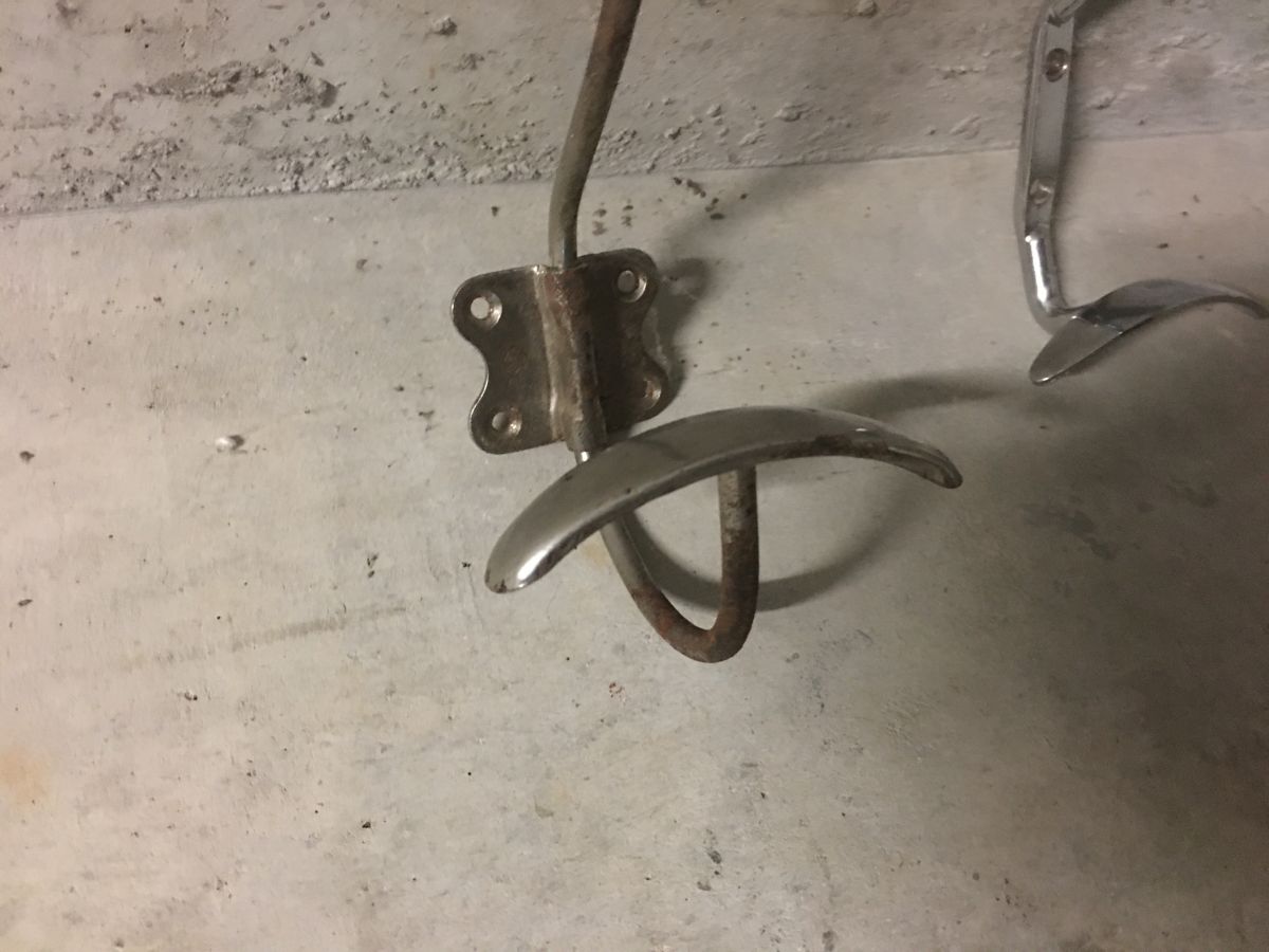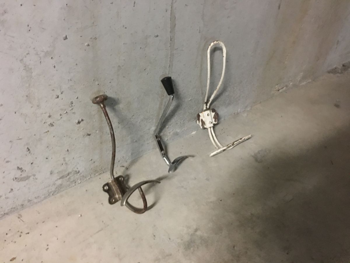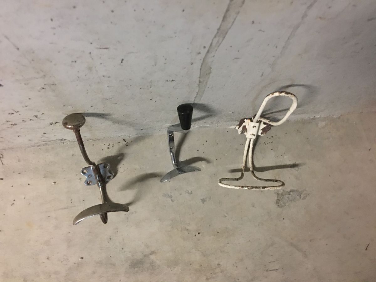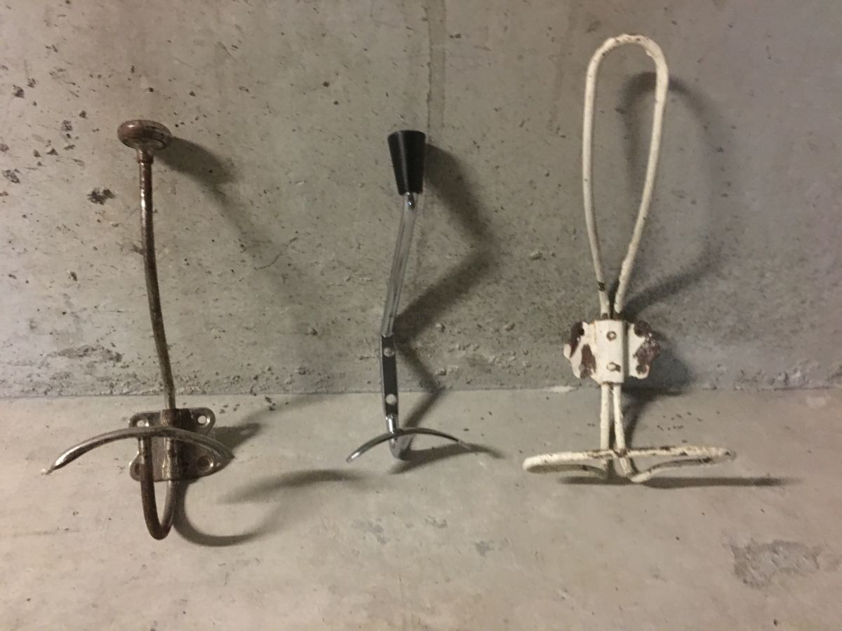 Lot de 3 patères anciennes en métal, volontairement laissées dans leur jus afin de conserver la superbe patine du temps, hauteur de 19 à 24cm, largeur de 8 à 10cm, profondeur 9cm.