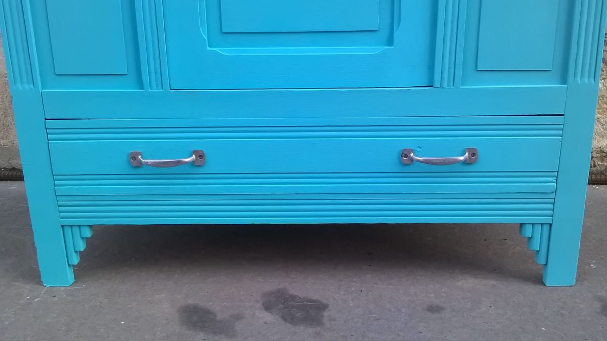 Armoire parisienne art déco. Penderie étagère sur le haut. Un tiroir sur le bas. La serrure a été modifier par une poignée chromé ronde.