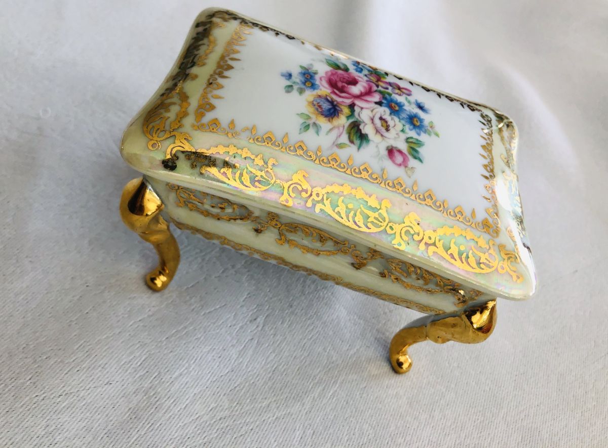 Boîte à bijoux en porcelaine Limoges signée