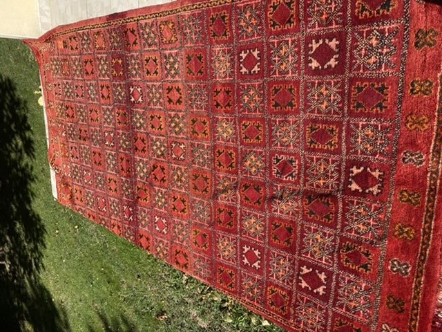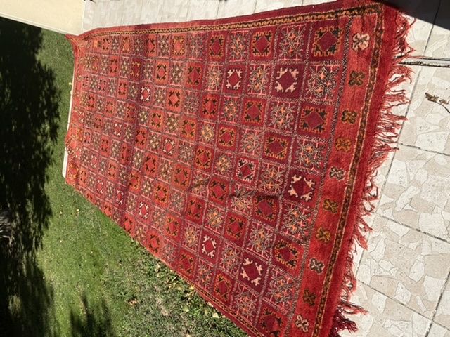 Notez que cet article a été réalisé pour un usage domestique et non commerciale. il a déjà servi en Maison d’une famille berbère pendant 40 ans en Moyen Atlas, à la région de Zayane nous estimons sa date de tissage aux des années 1980-85, et il est en excellent état capable de traverser le temps et les époques sans soucis. Les imperfections et son patinage par le temps le rendent unique et avec une âme vraiment attachante au cœur de votre Habitation.