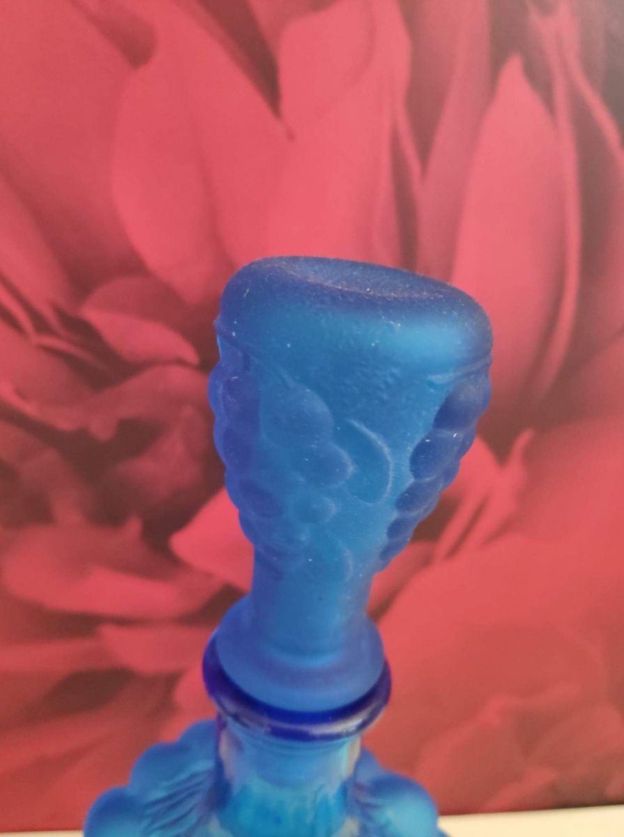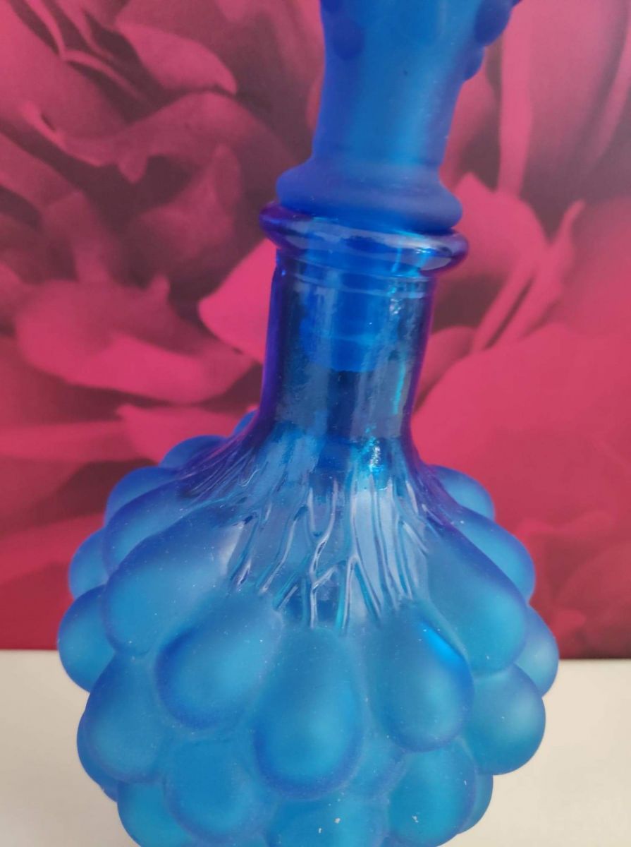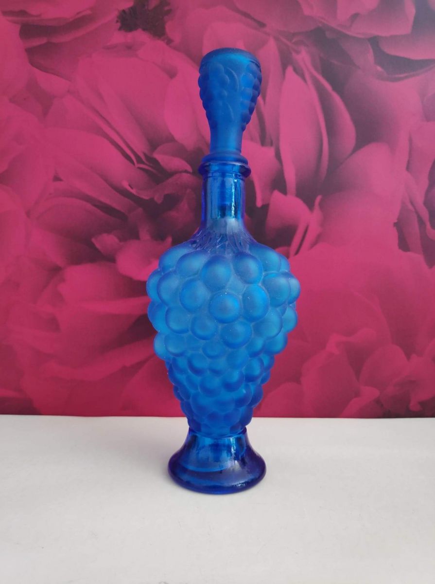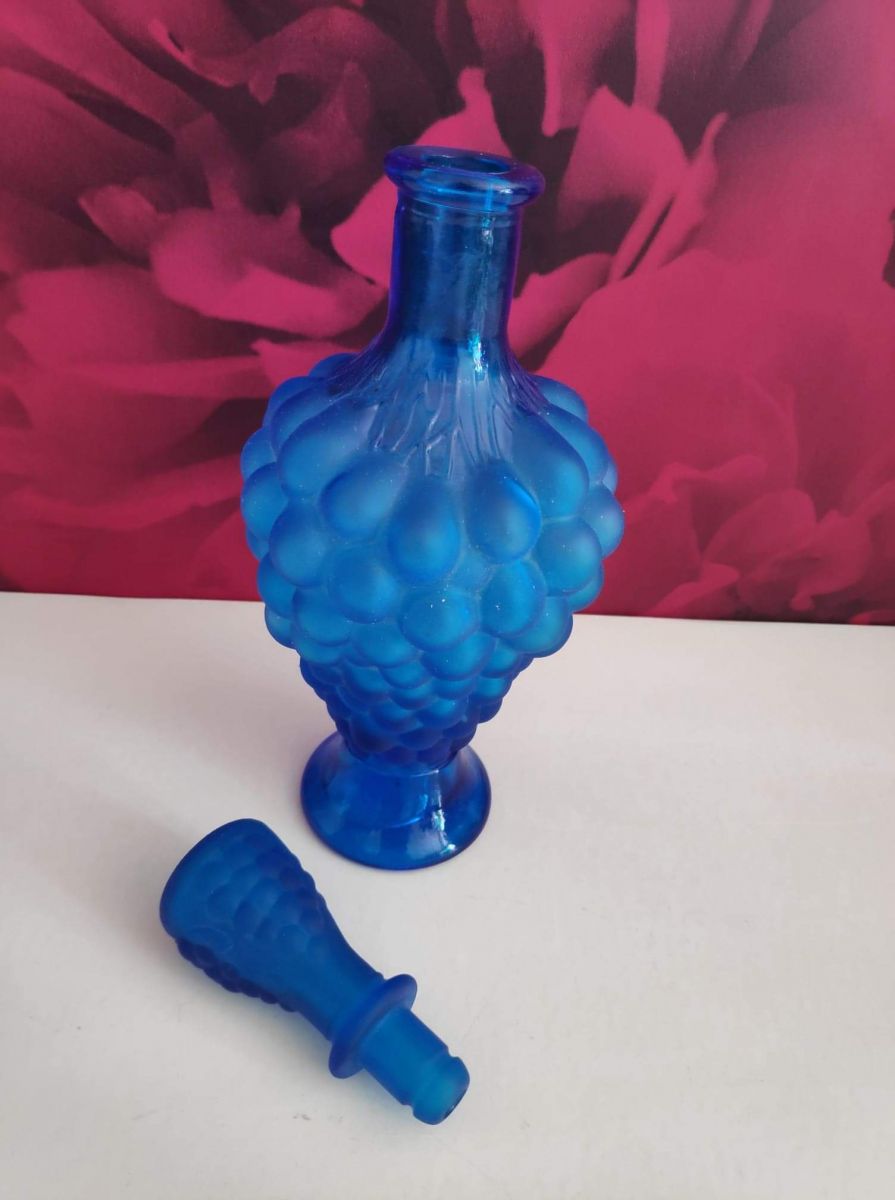 carafe en verre bleue en forme de grappe de raisin avec bouchon
