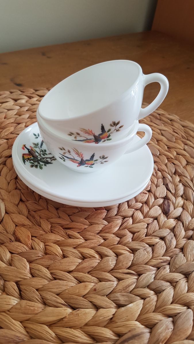 Lot de 2 tasses et soucoupes Arcopal - Motif oiseaux faisan