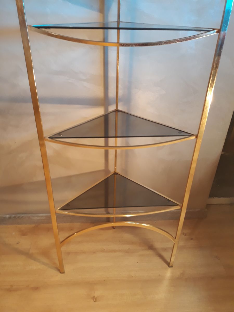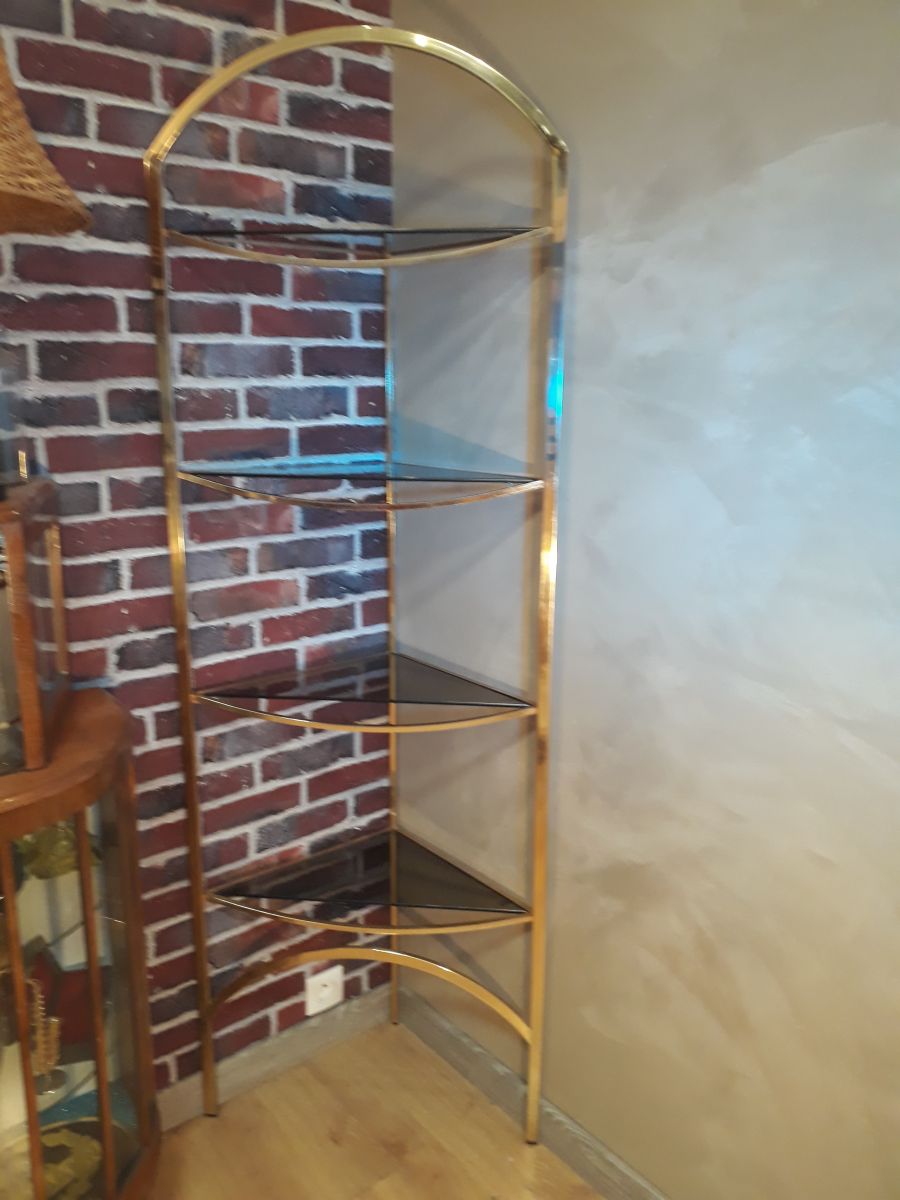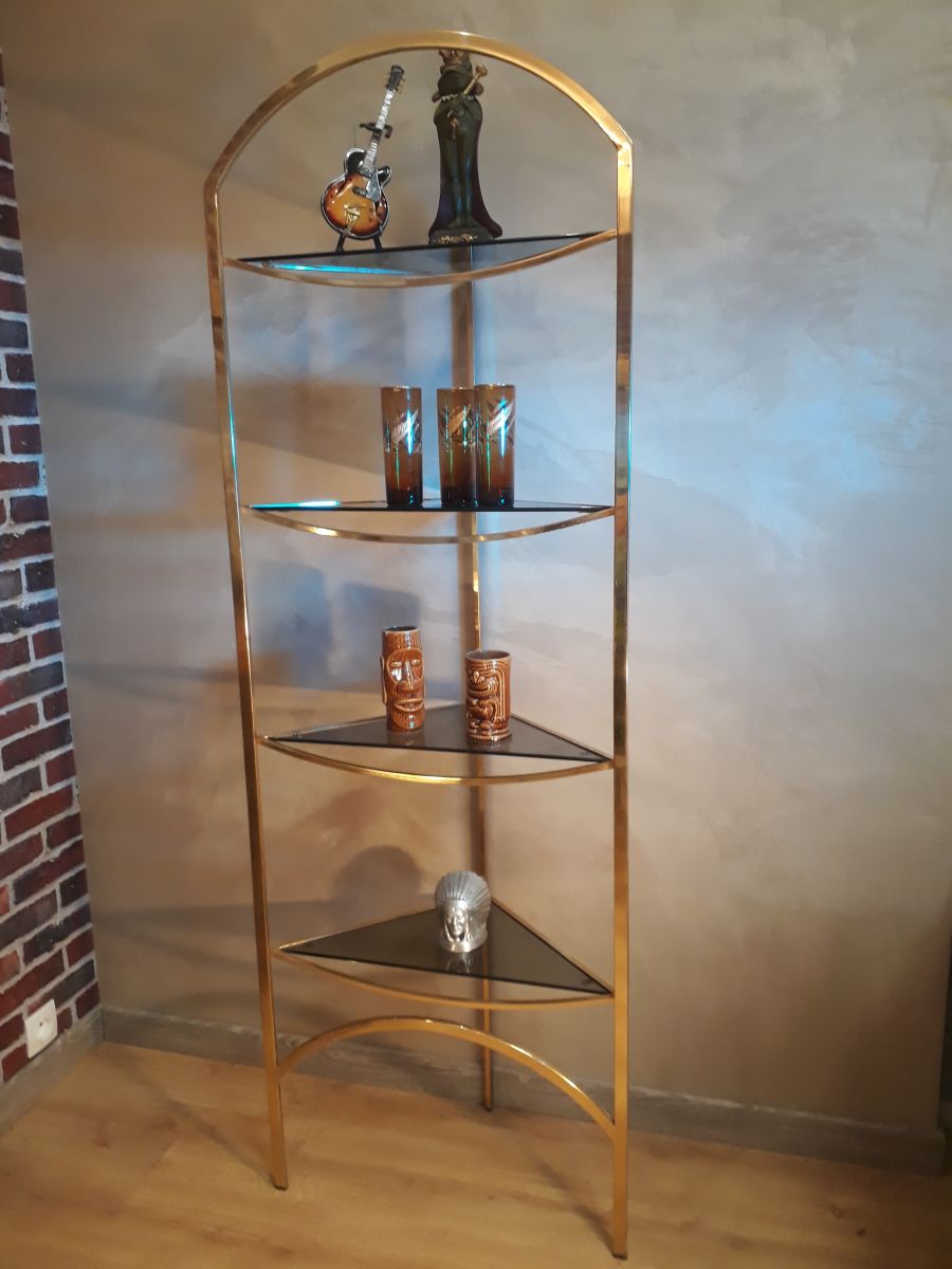 vitrine etagere angle ou pas , or a 4 tablettes verre fumé 1970