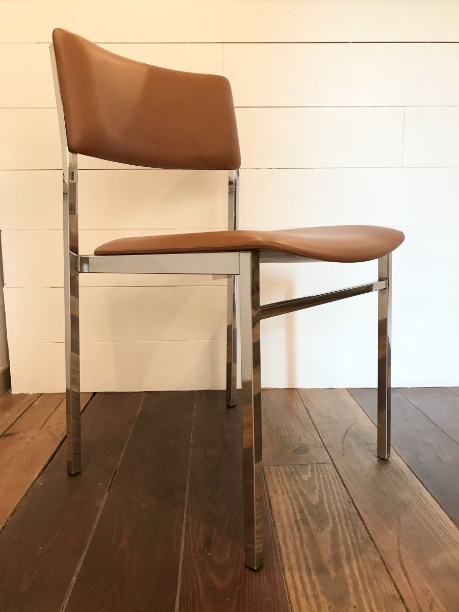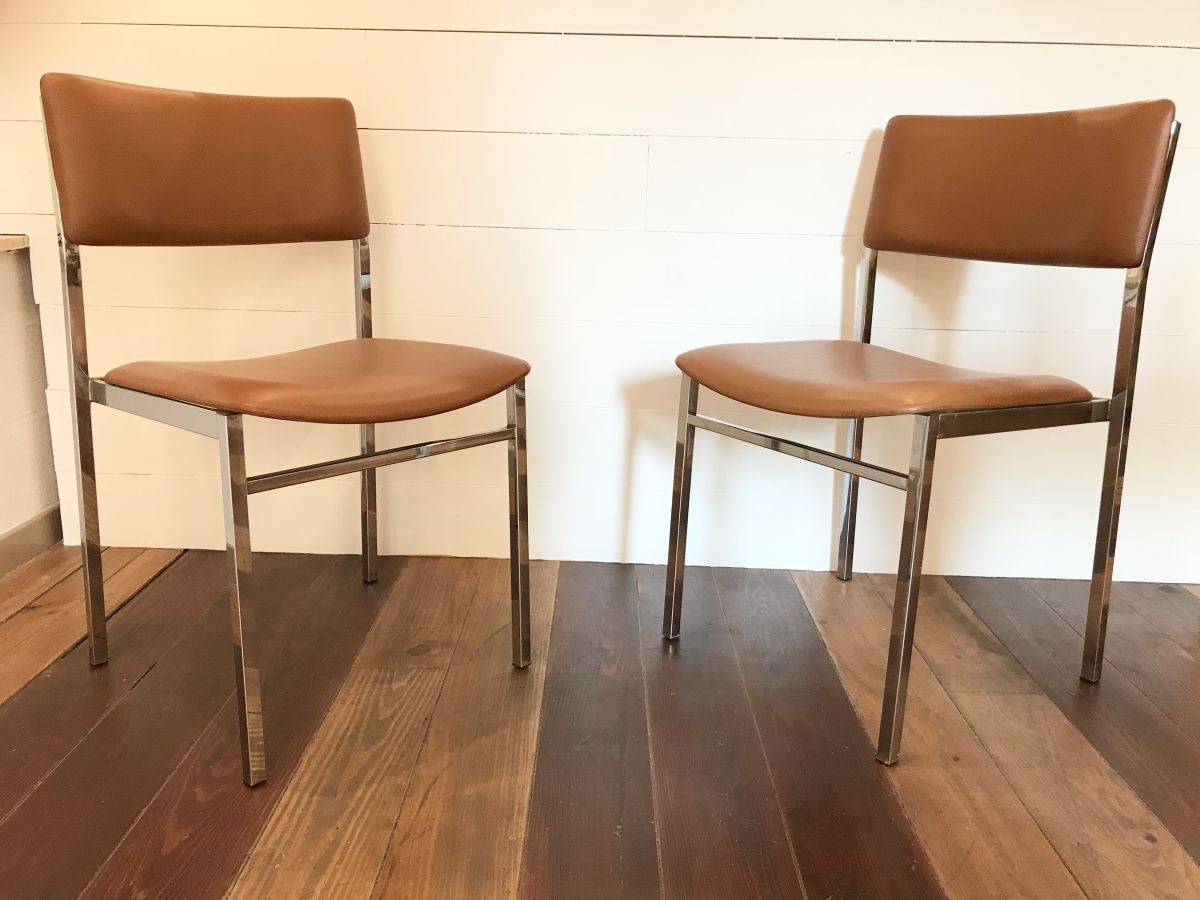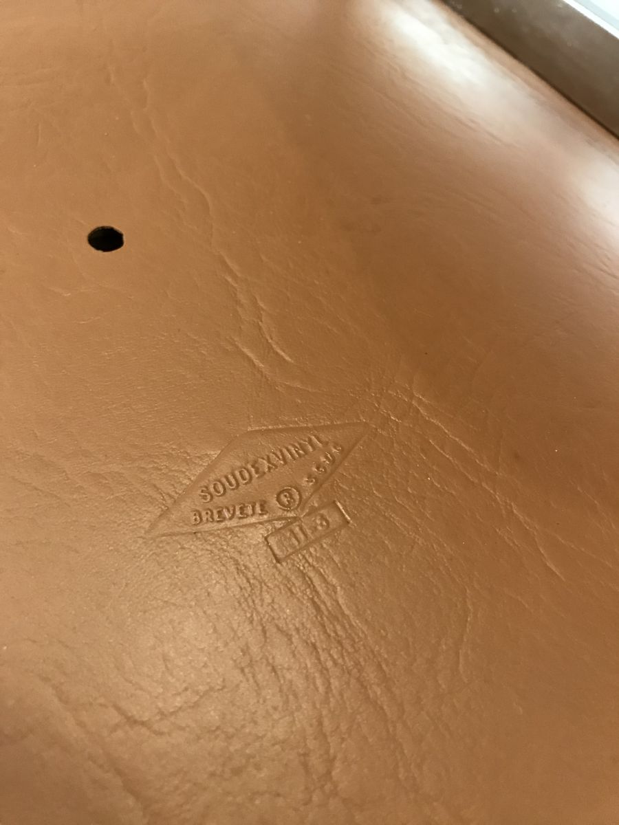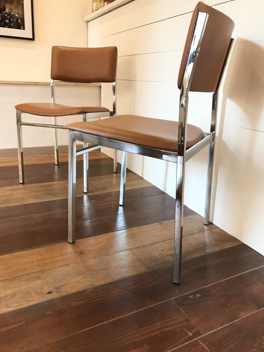 Paire de chaises vintage de la marque Soudexvinyl, en similicuir marron et chrome.
