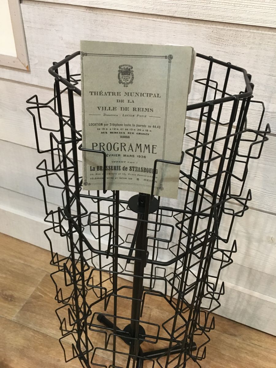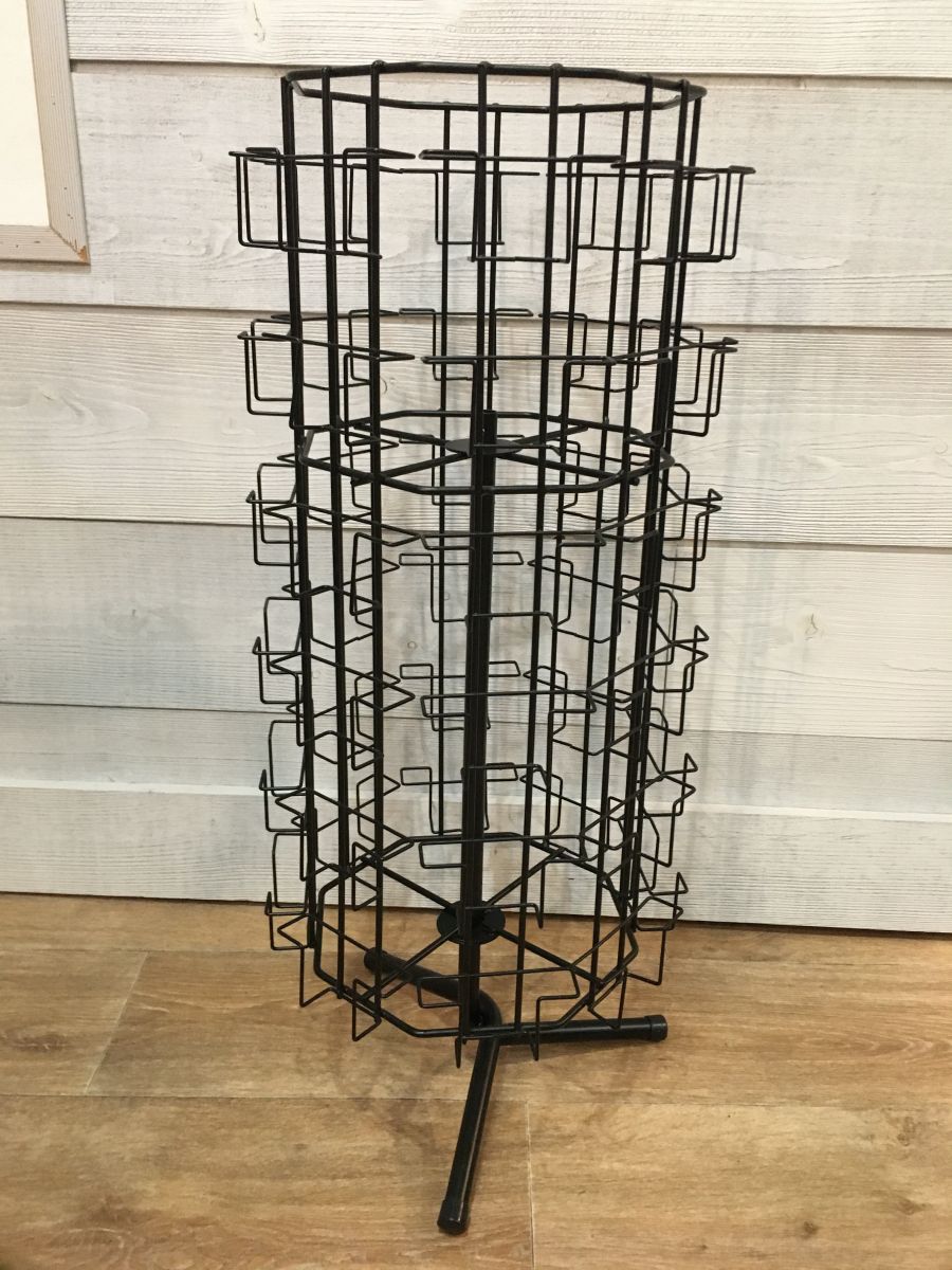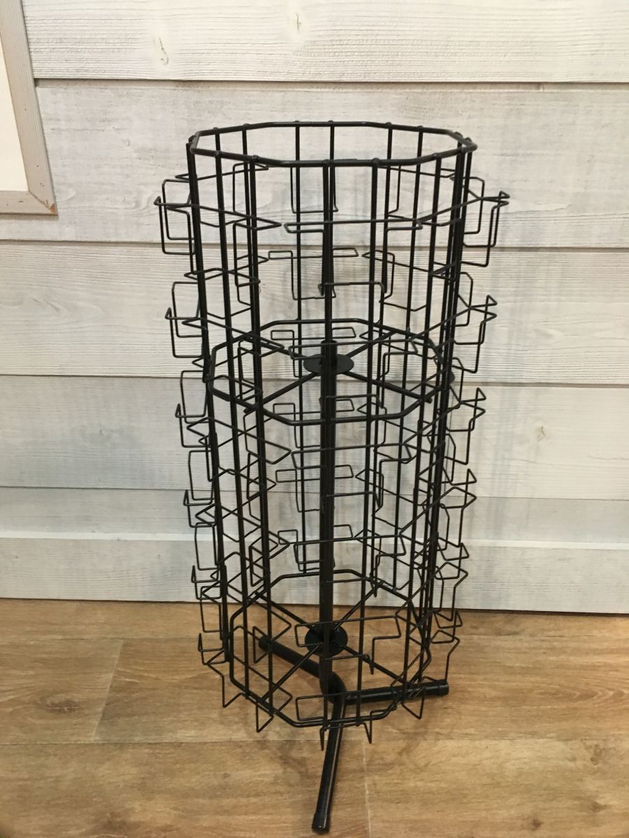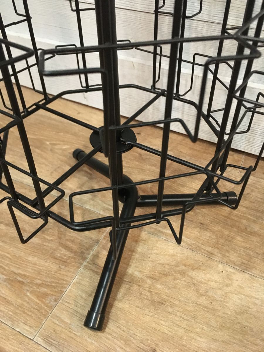 Tourniquet porte cartes en métal noir. Modèle à poser au sol ou sur un meuble car il n'est pas très haut.