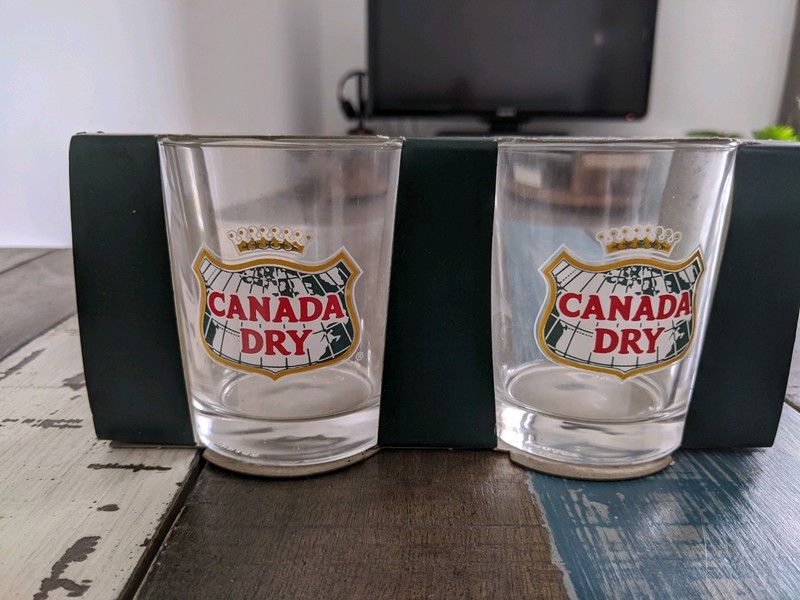 Lot de 6 verres Canada Dry. Neuf jamais servi. 12€ le lot de 6. Possibilité de rajouter des lots de 2 verres sur demande. 20cl