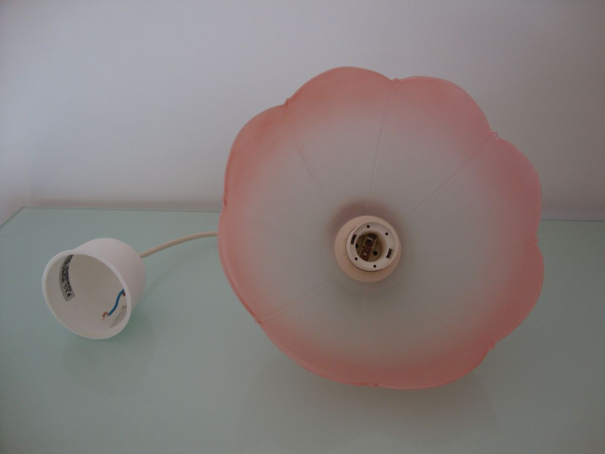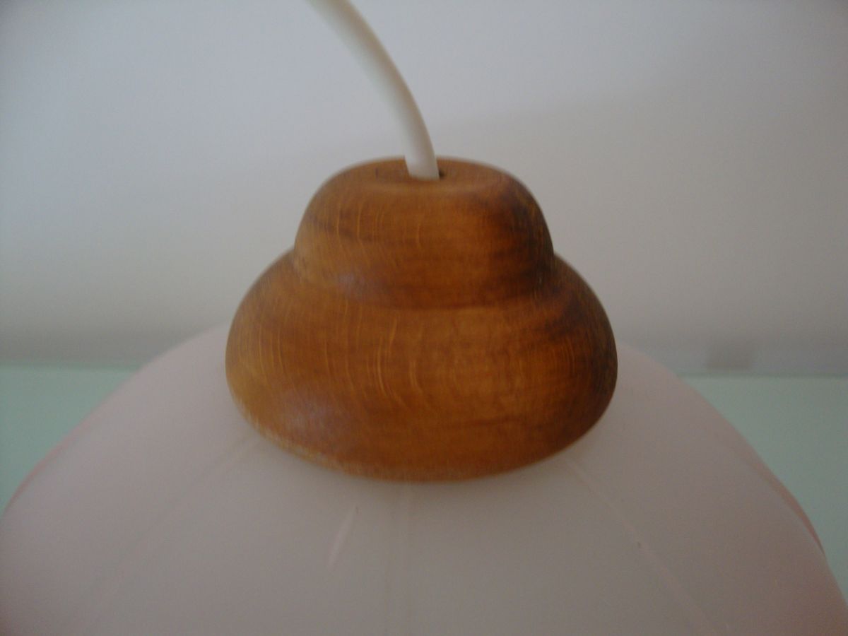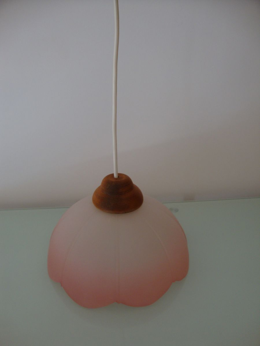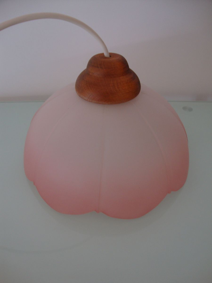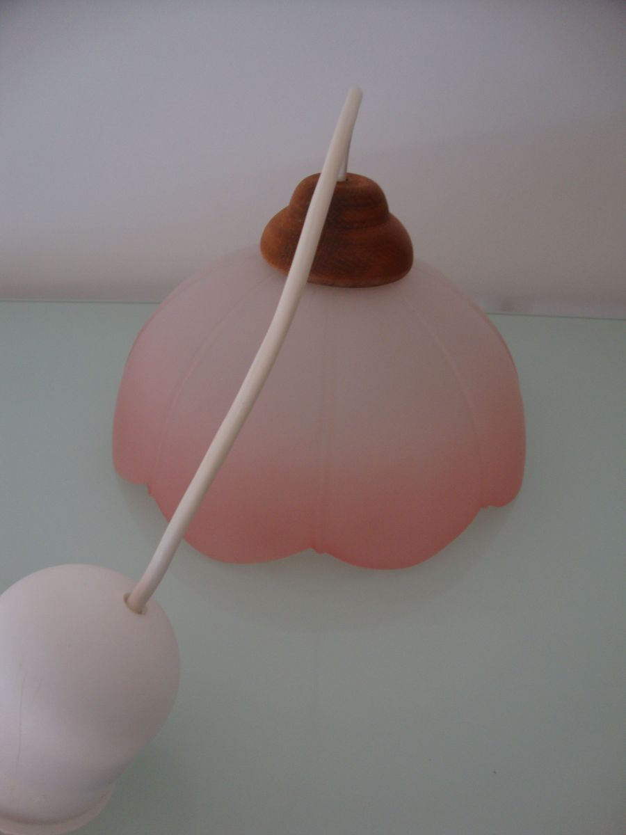 Suspension des années 70 en opaline couleur pêche dégradée , bords festonnés, en bon état malgré