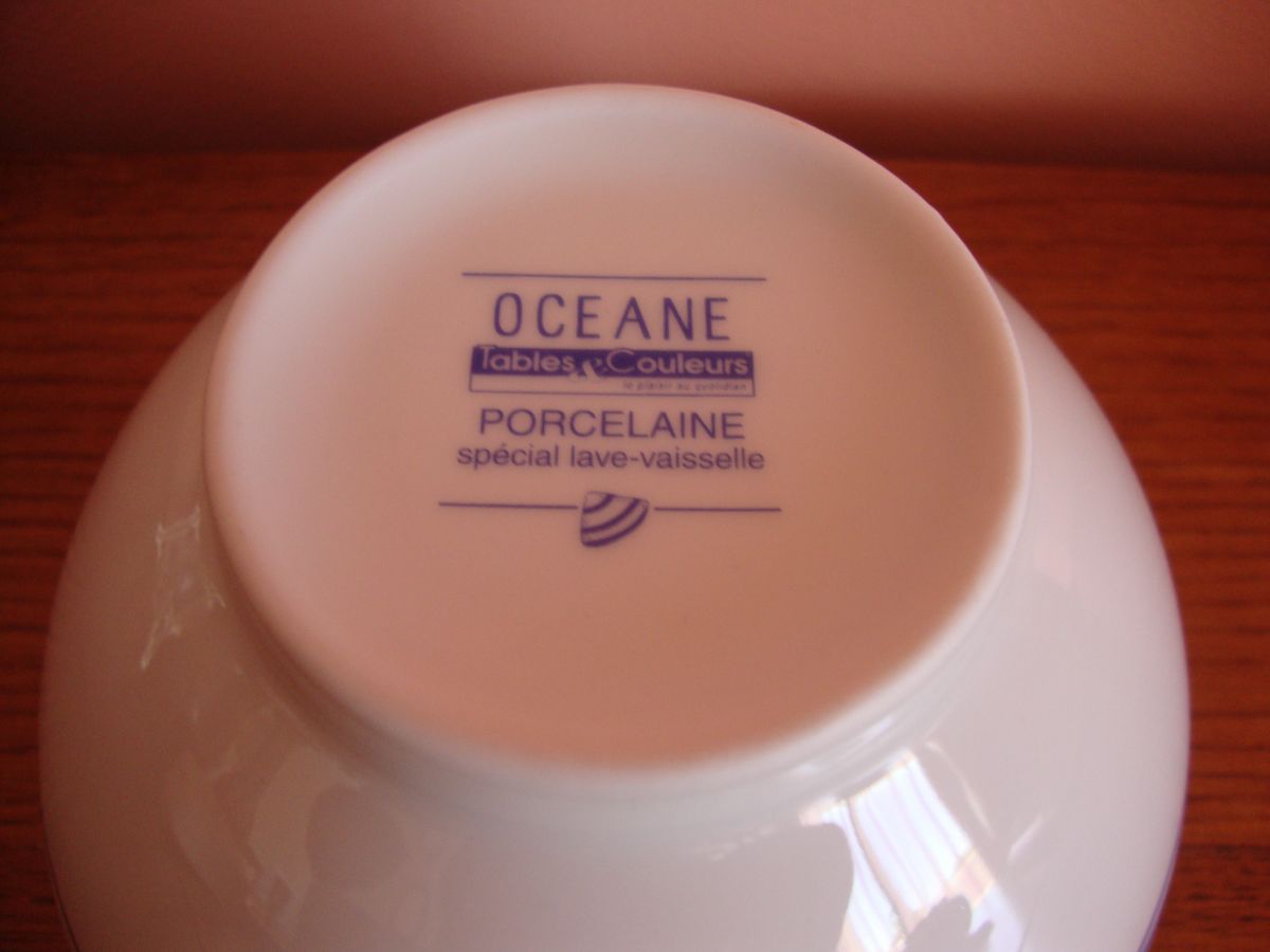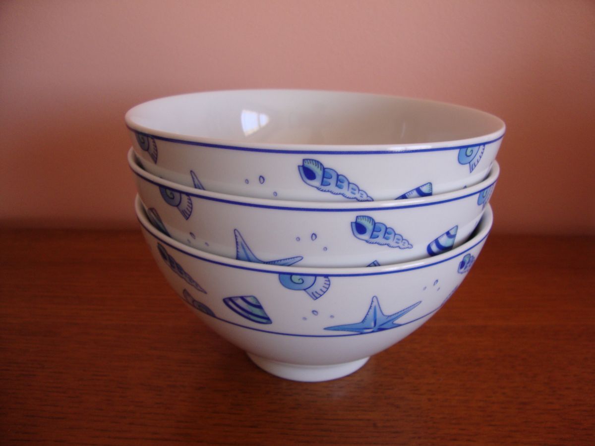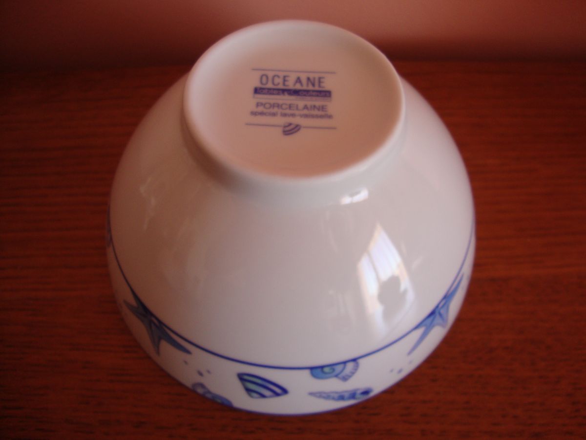 3 bols vintage GM en porcelaine modèle océane. Déco bord de mer qui donnera un petit air de vacances à vos petits déjeuners.