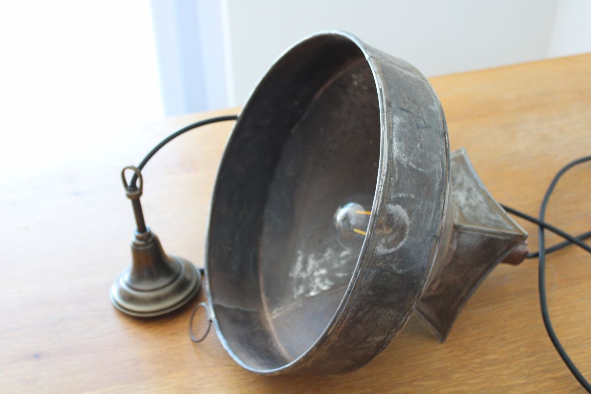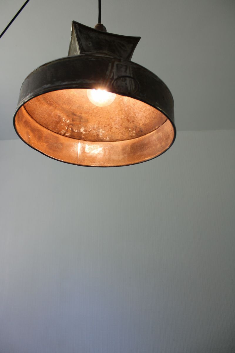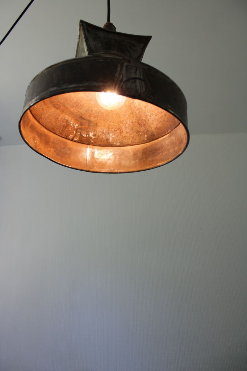 Création suspension luminaire à partir d'un entonnoir à tonneaux des années 50/60.