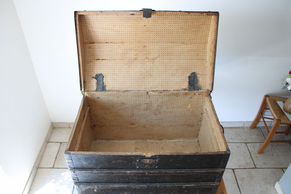 Intérieur tapissé. Étiquettes d'époque collées, inscription encore lisible " colis bagage".