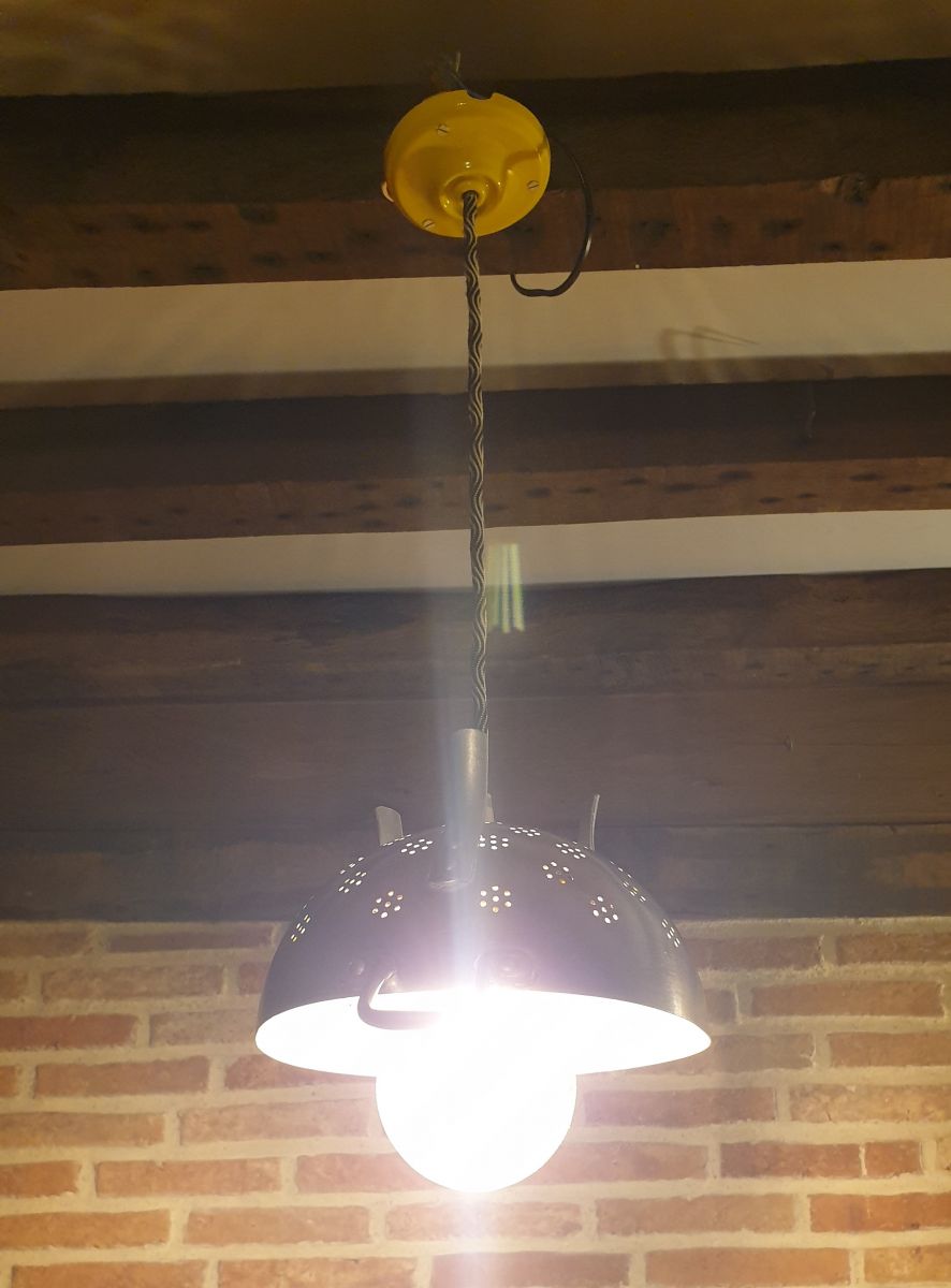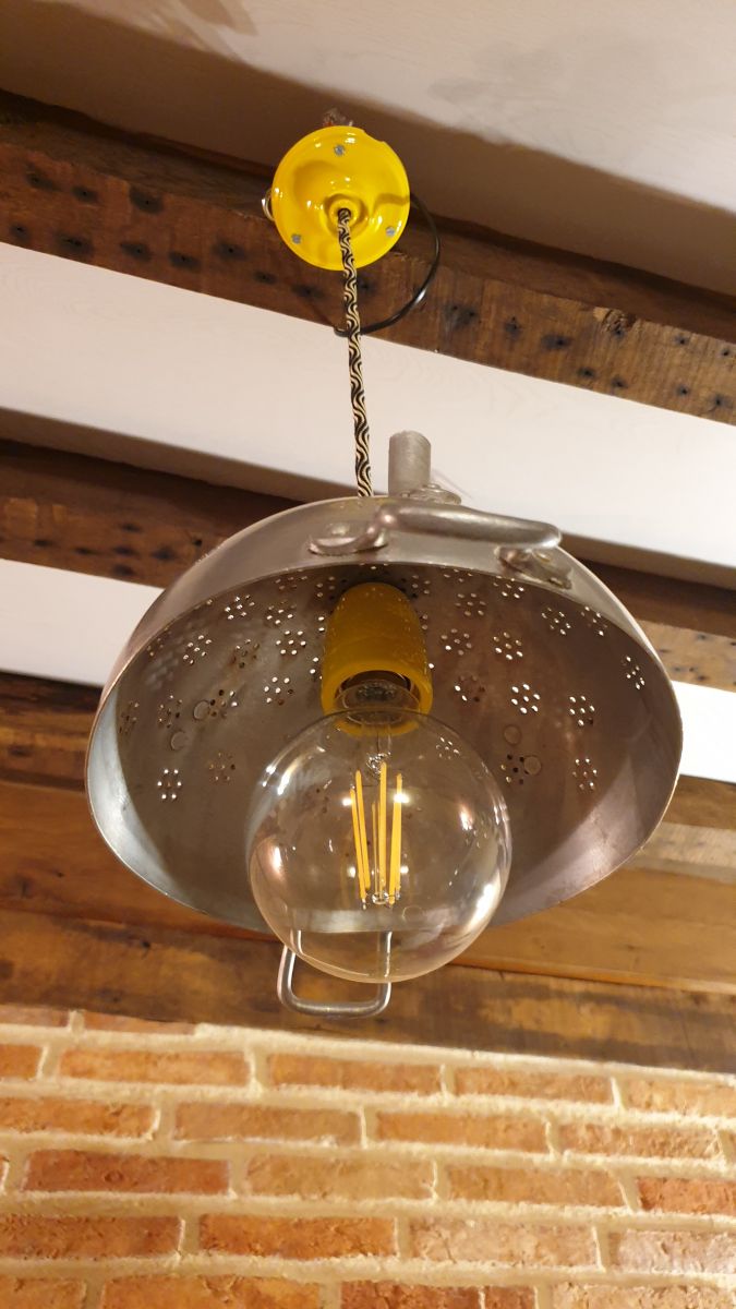 Une douille en porcelaine et un câble rond monté sur une rosace en porcelaine jaune habillent parfaitement cette passoire. Cette création de style ancien peut convenir à un décor moderne et industriel. L’élégance intemporelle de la porcelaine donne une touche vintage à tout milieu.