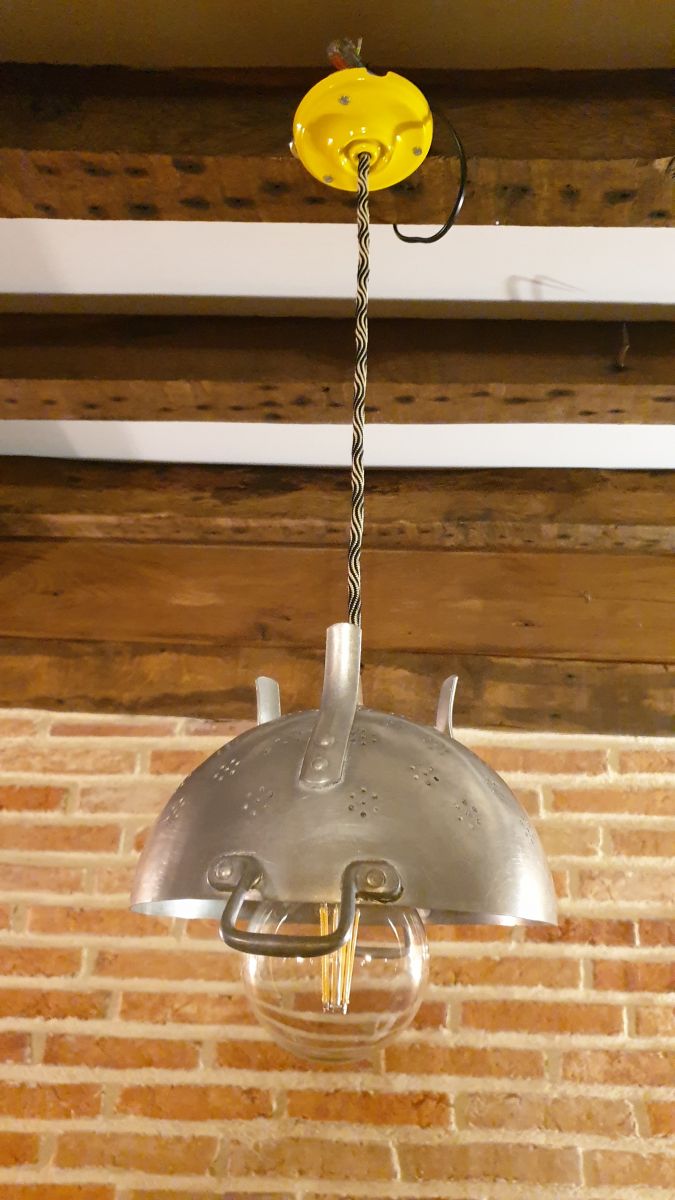Cette ancienne passoire en aluminium est restée dans son jus, seul un petit nettoyage lui a été apporté.