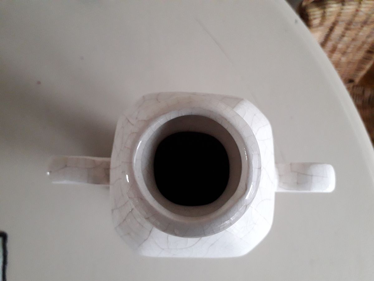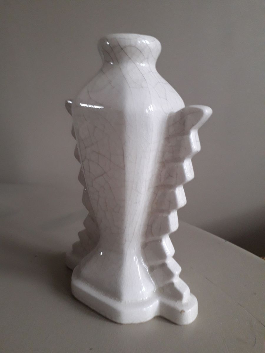 Vase art-déco signé ELGE. La vase est de l'ancienne manufacture ELGE à Vierzon. Le vase est en céramique craquelée de couleur ivoire. En excellent état.