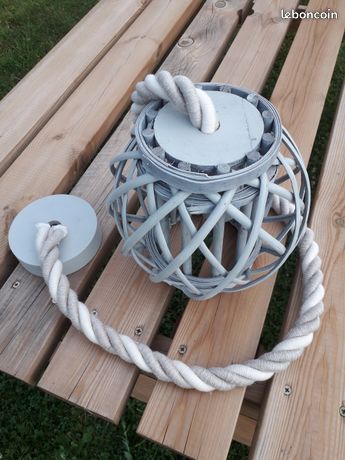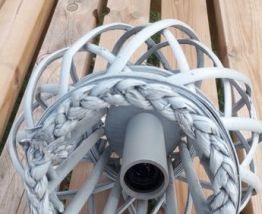 Il a ensuite été monté sur la lampe suspension corde 2XL en coton brut et lin naturel de 24mm réalisée avec des matériels de qualité. La longueur de la corde est de 1 mètre mais peut être réduite si nécessaire. Elle est prête à poser ; les vis et les chevilles sont fournies.