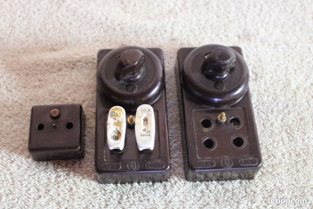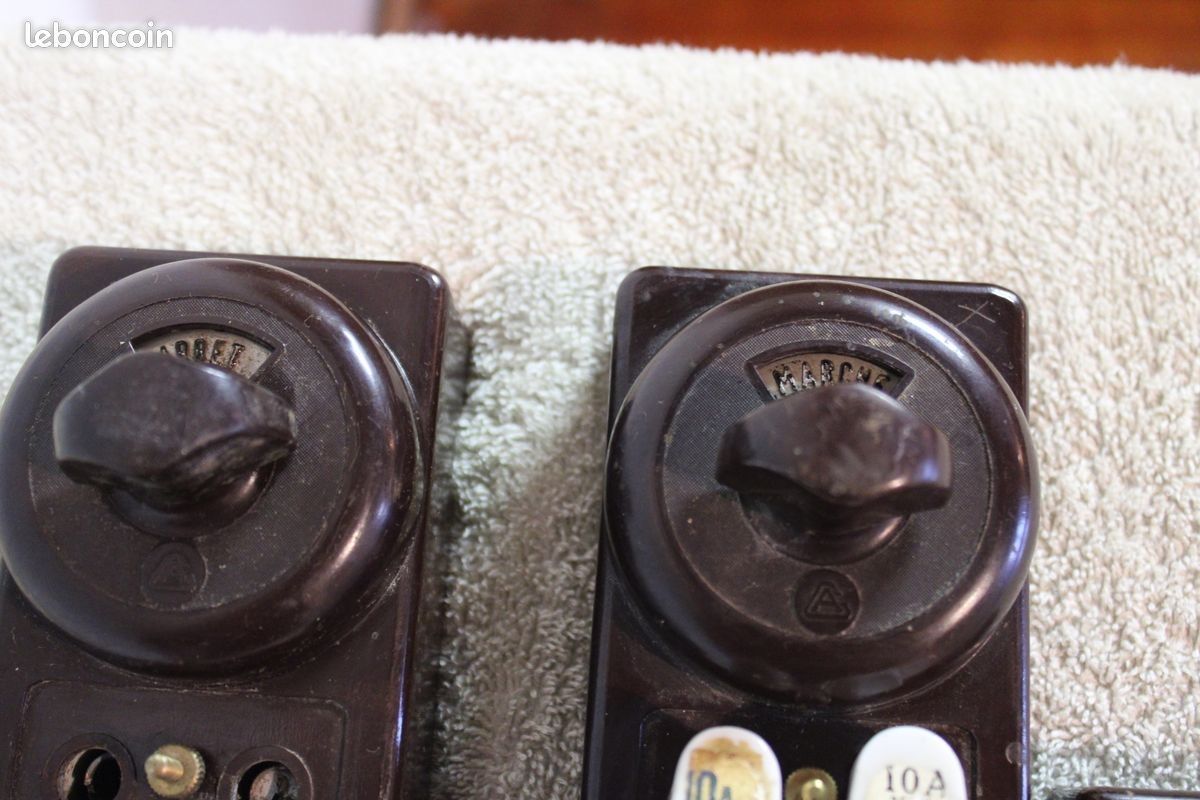 nterrupteurs en bakélite années 40/50. Type industriel. Fenêtre inscriptions marche-arrêt en état de fonctionnement.